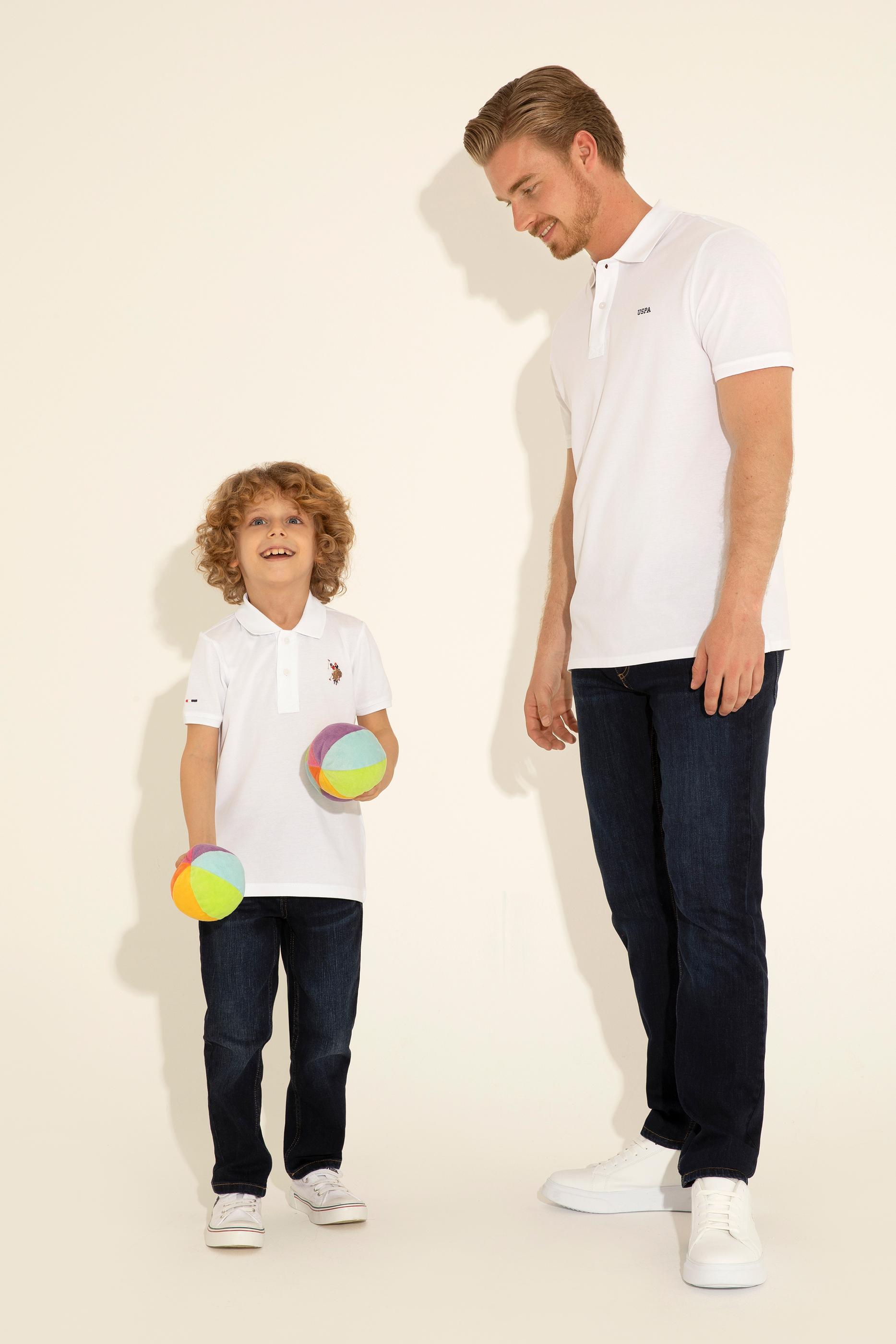 Erkek Çocuk Beyaz Basic Polo Yaka Tişört