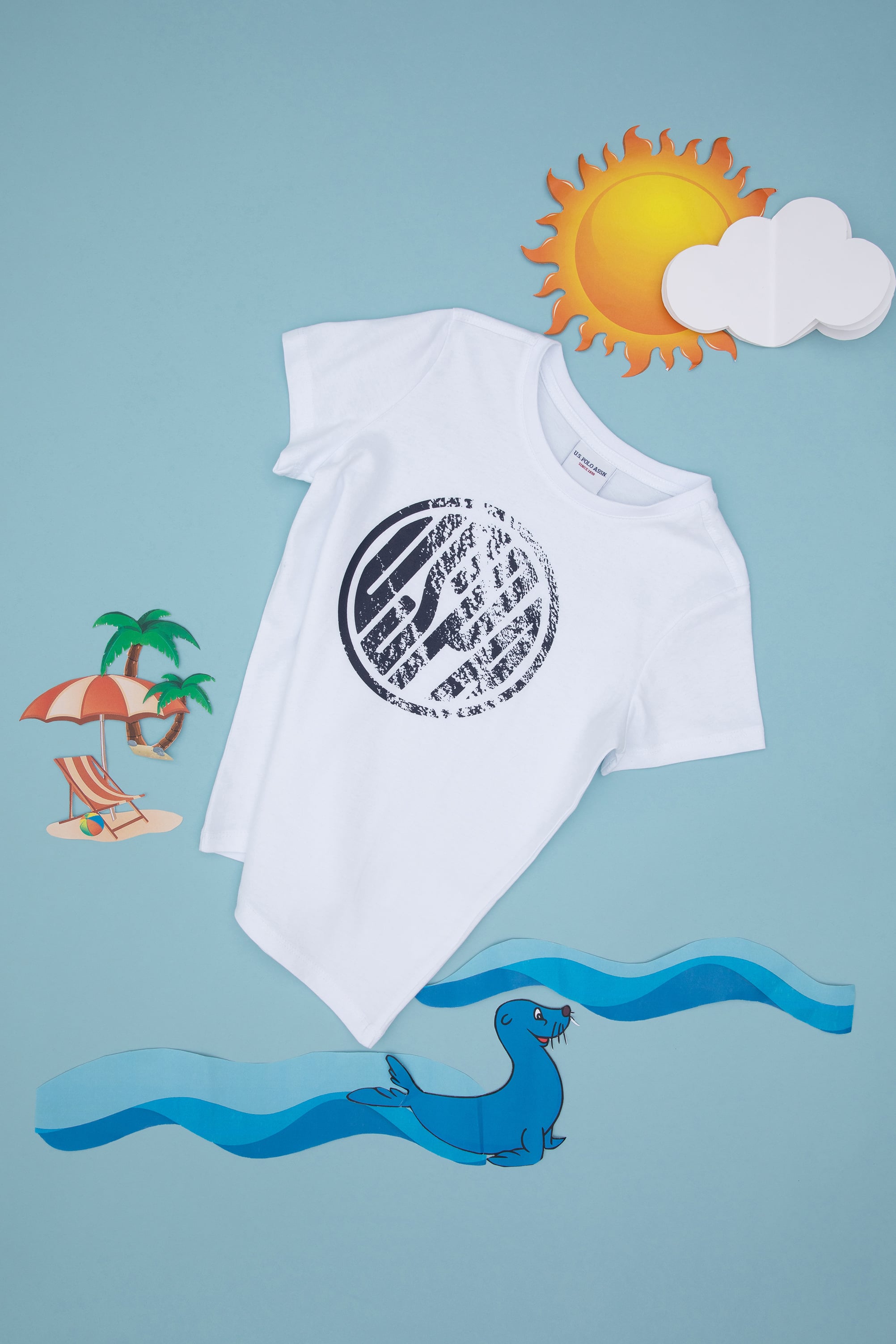 - Erkek Çocuk Beyaz Basic Bisiklet Yaka Tişört