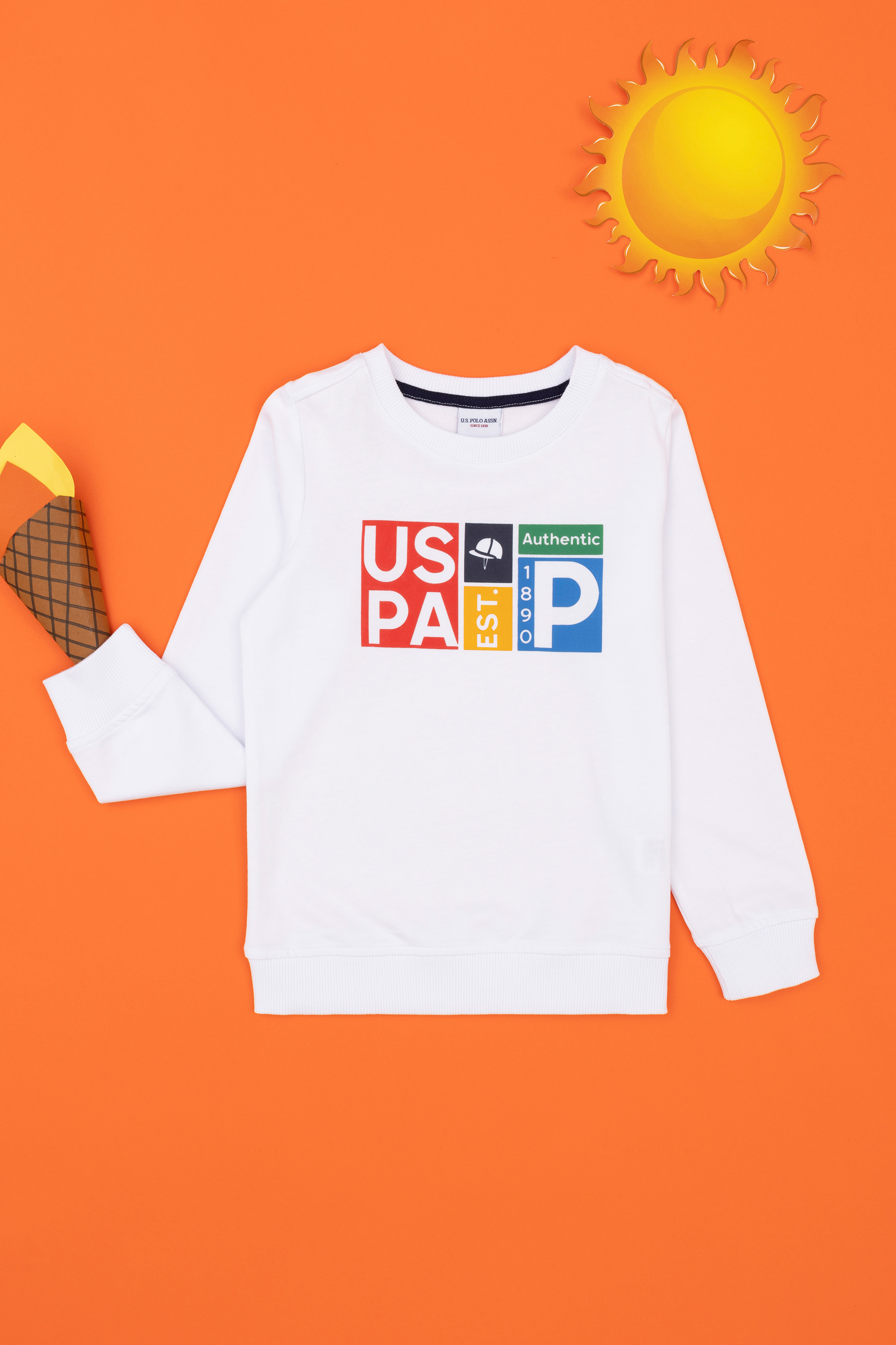 - Erkek Çocuk Beyaz Bisiklet Yaka Sweatshirt