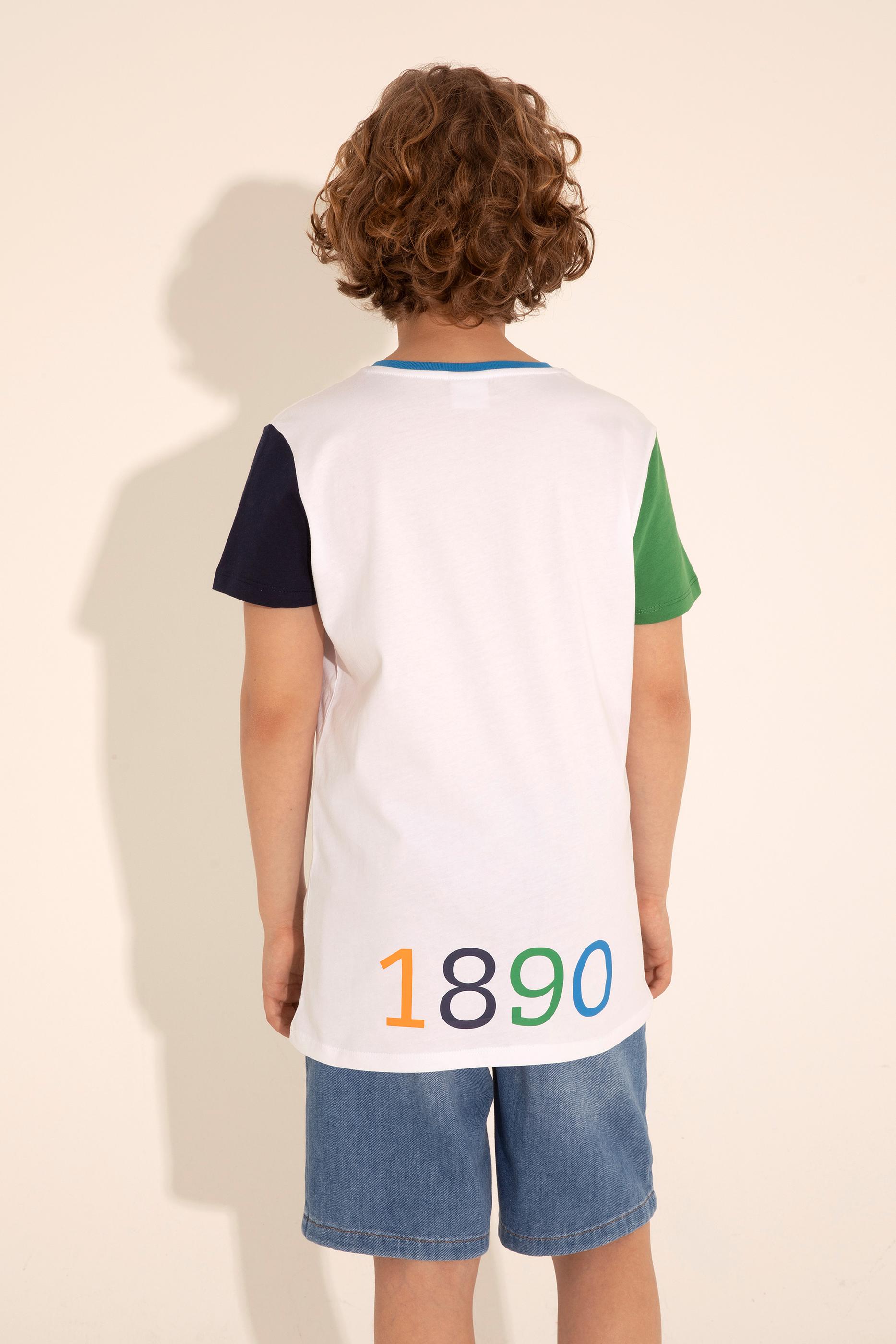 Erkek Çocuk Beyaz Bisiklet Yaka Tişört