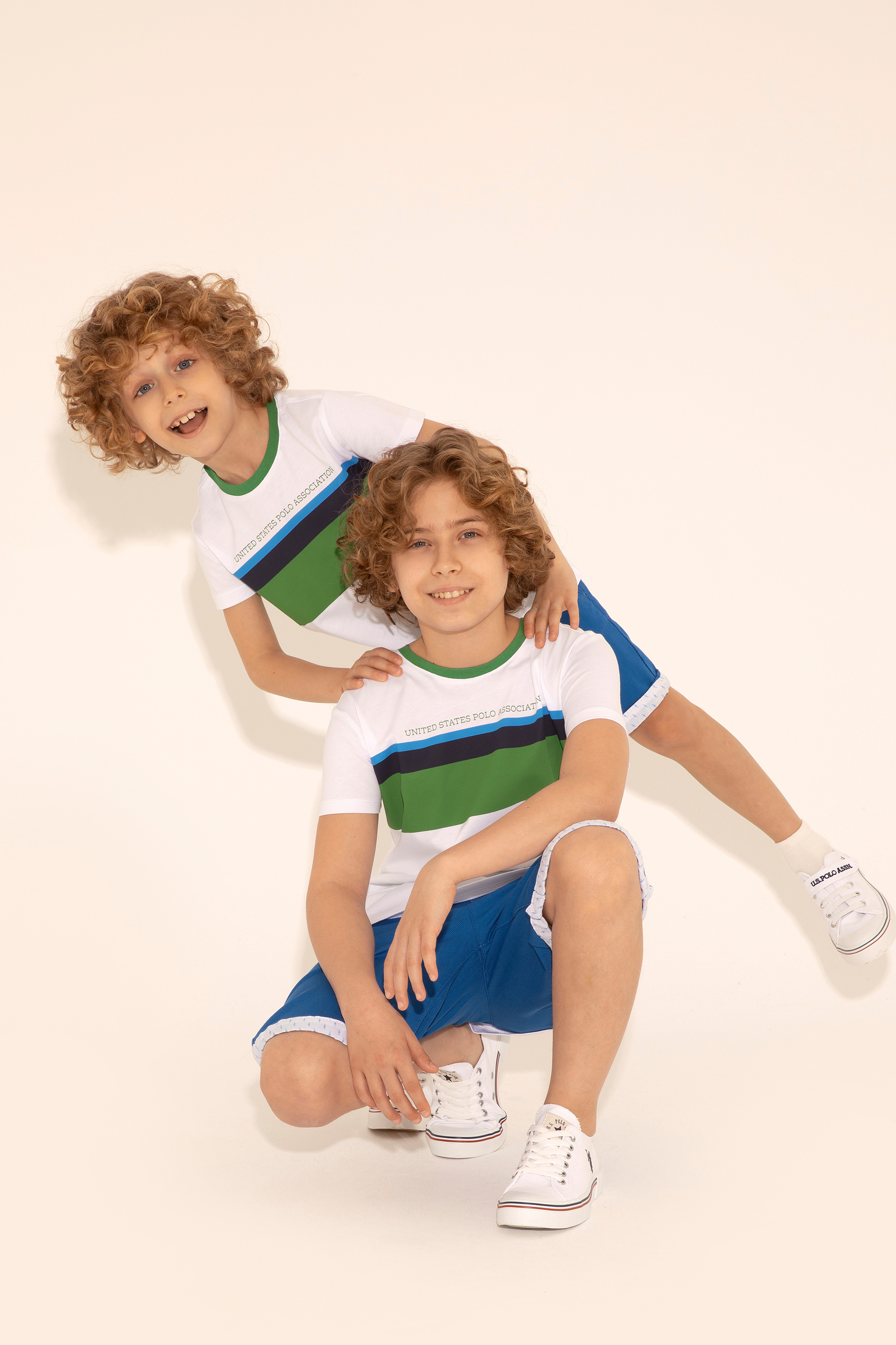 Erkek Çocuk Beyaz Bisiklet Yaka Tişört