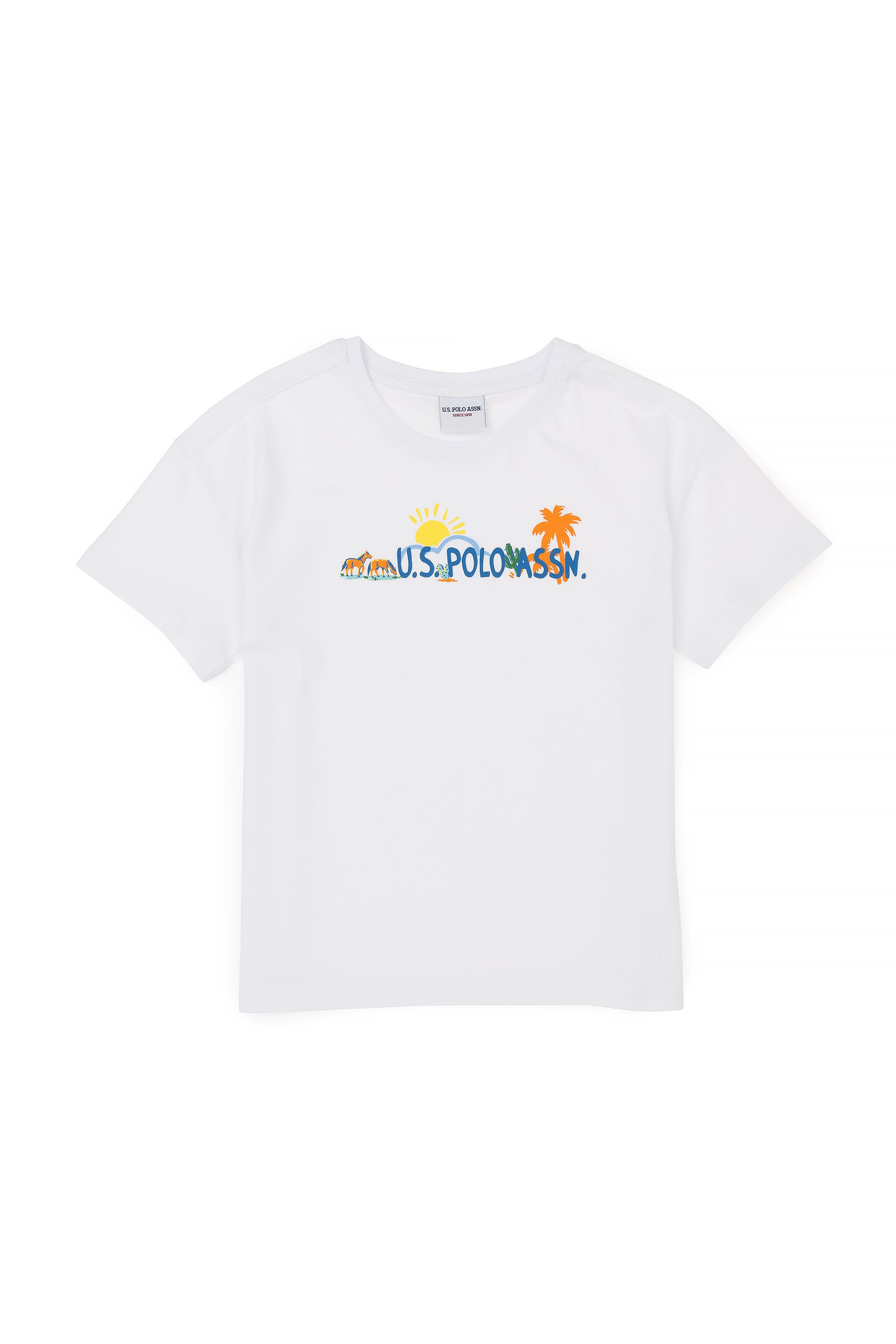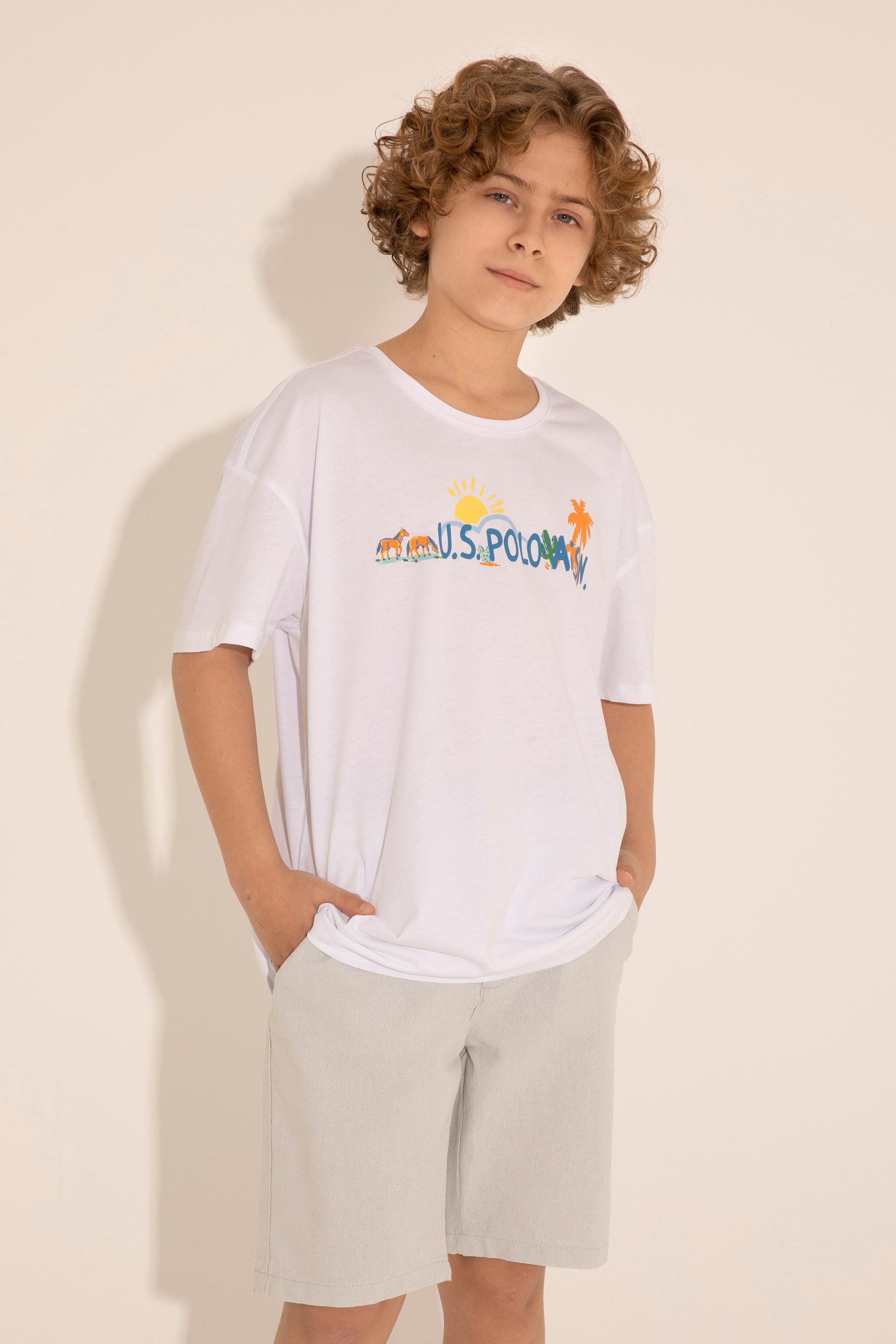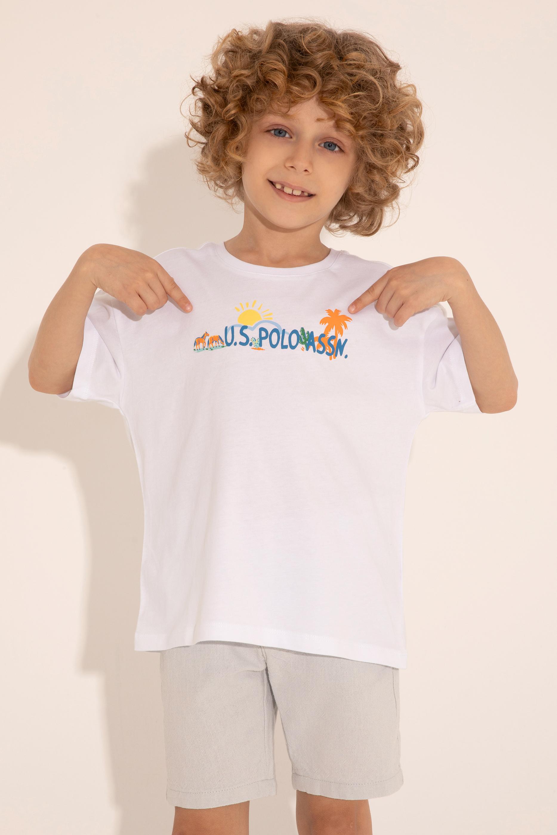Erkek Çocuk Beyaz Bisiklet Yaka Tişört
