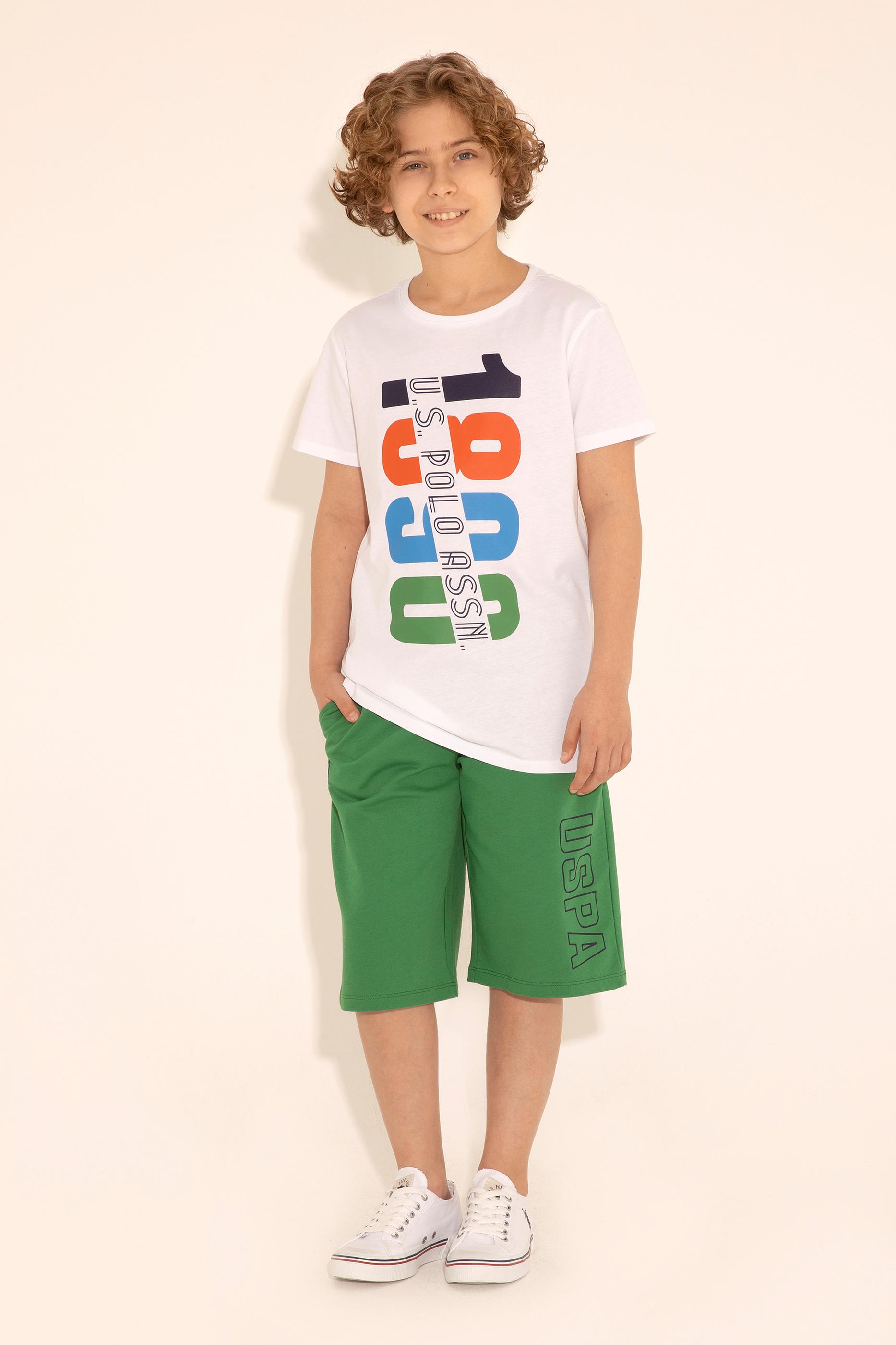 Erkek Çocuk Beyaz Bisiklet Yaka Tişört