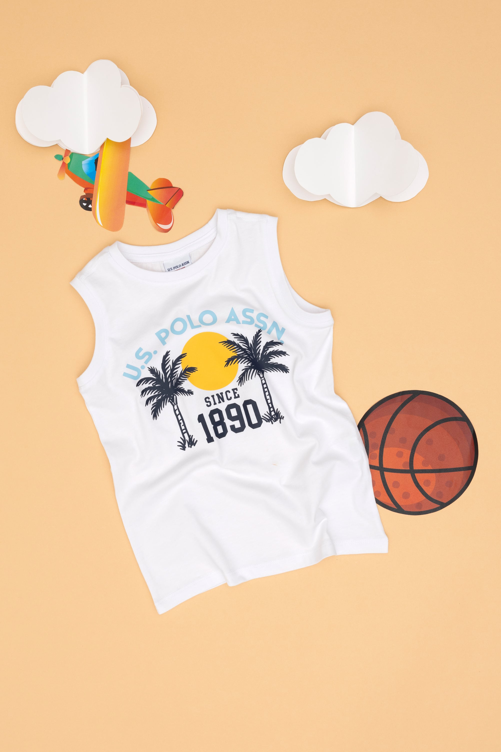 - Erkek Çocuk Beyaz Kolsuz Bisikelt Yaka Tişört