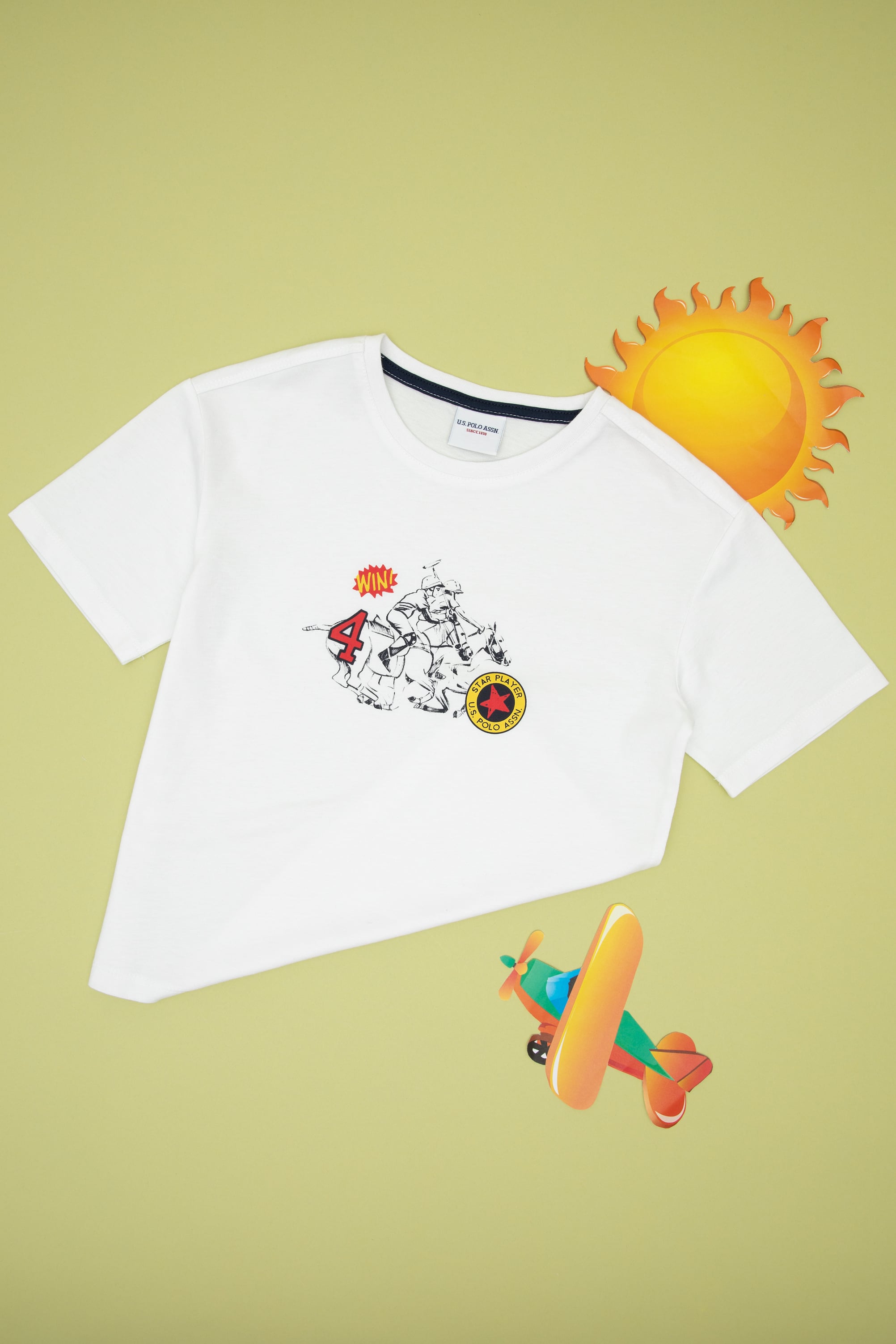 - Erkek Çocuk Beyaz Comfort Bisiklet Yaka Tişört