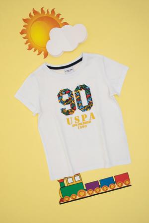 - Erkek Çocuk Beyaz Bisiklet Yaka Tişört