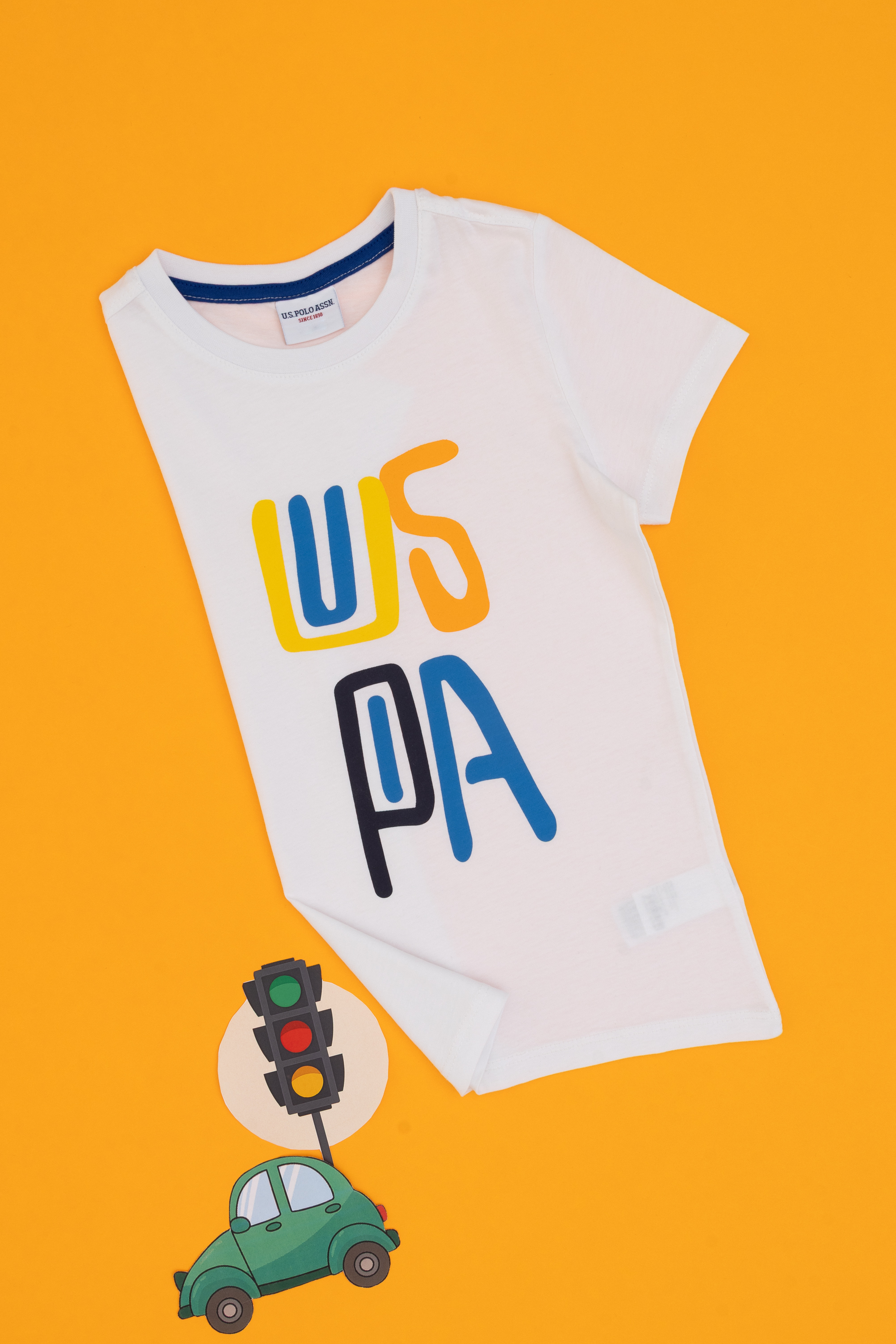 - Erkek Çocuk Beyaz Bisiklet Yaka Tişört