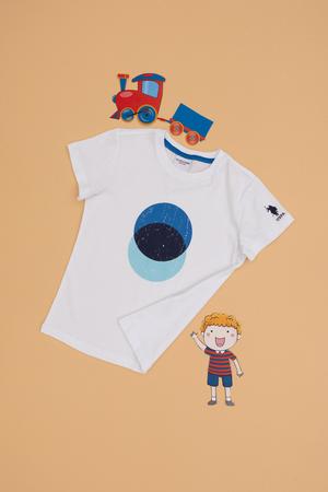 Erkek Çocuk Beyaz Bisiklet Yaka Tişört