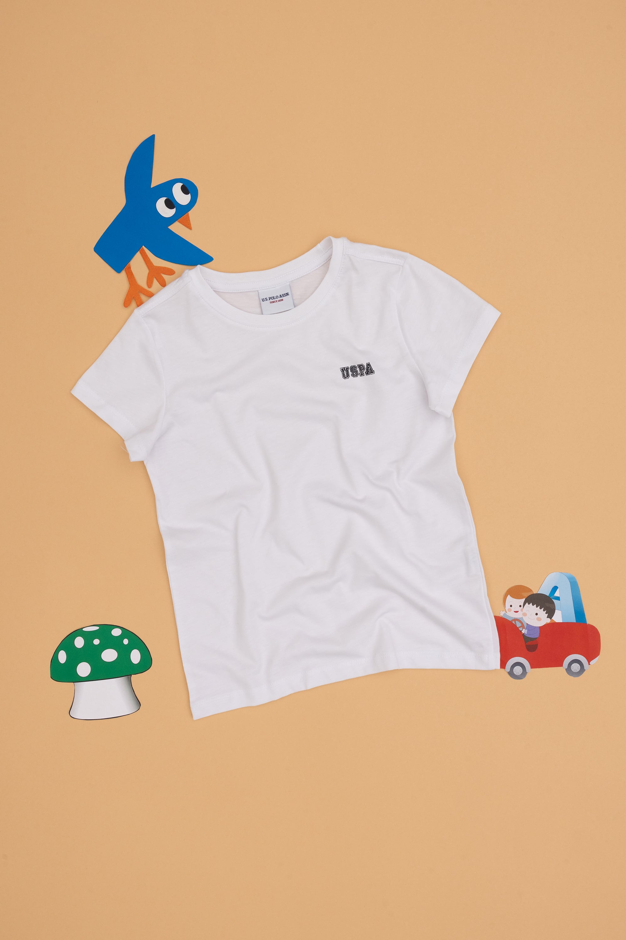 - Erkek Çocuk Beyaz Bisiklet Yaka Tişört