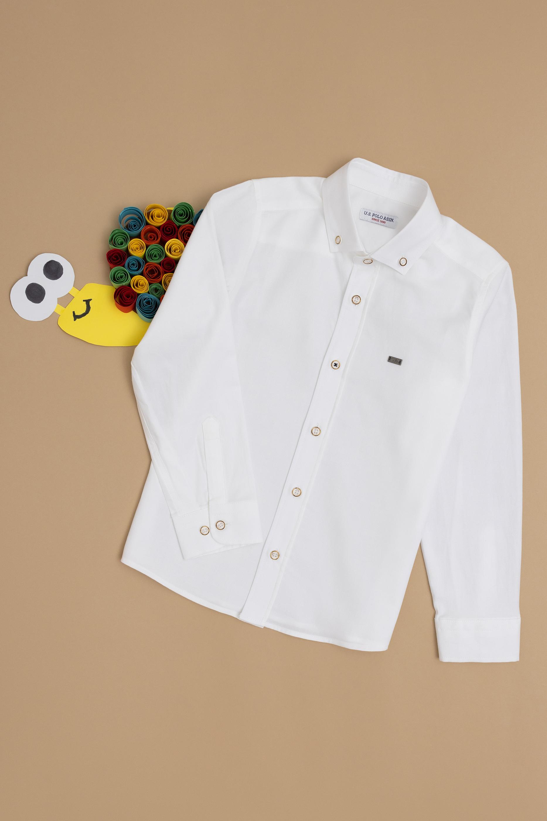 Erkek Çocuk Beyaz Uzun Kollu Basic Gömlek