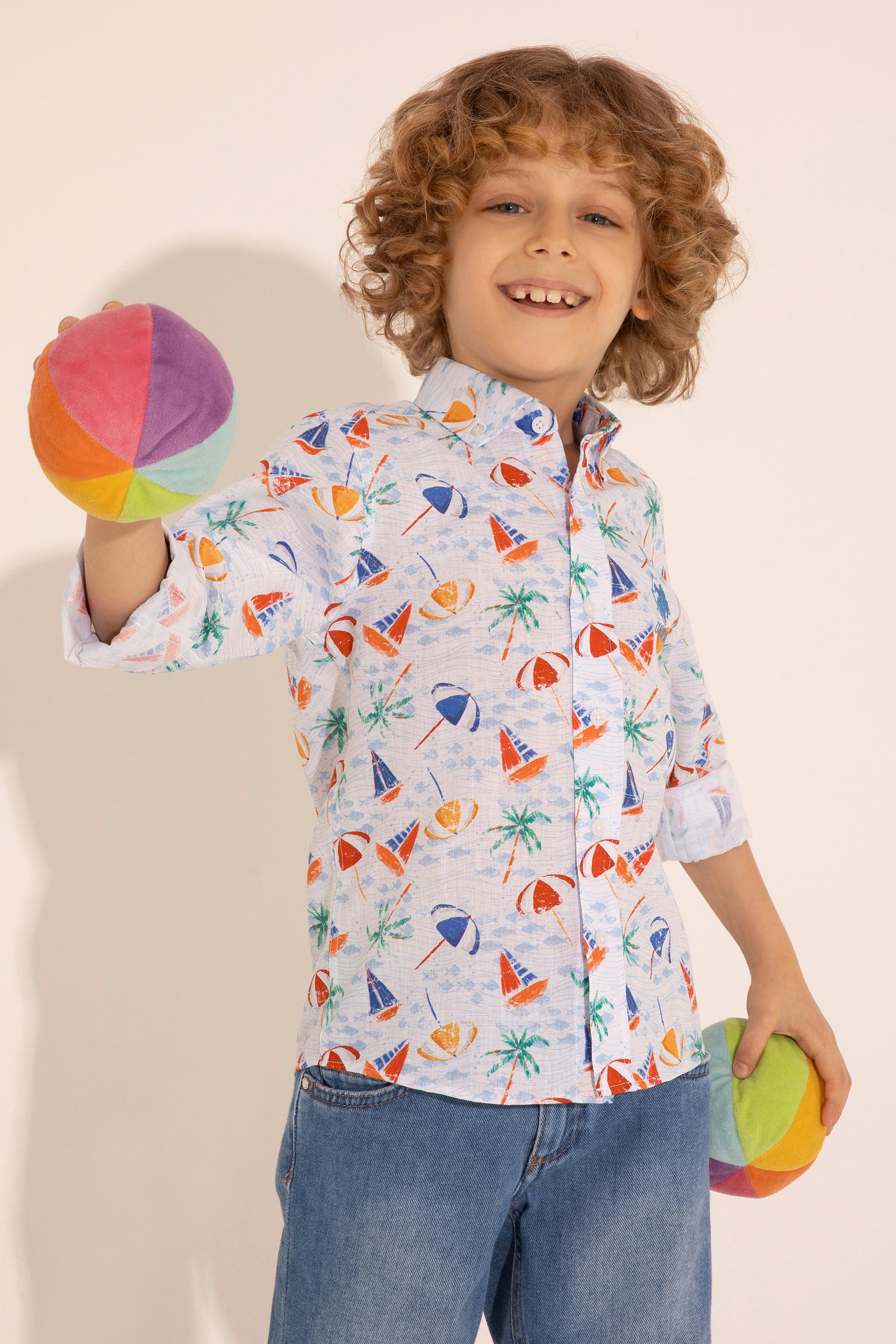 Erkek Çocuk Beyaz Uzun Kollu Gömlek