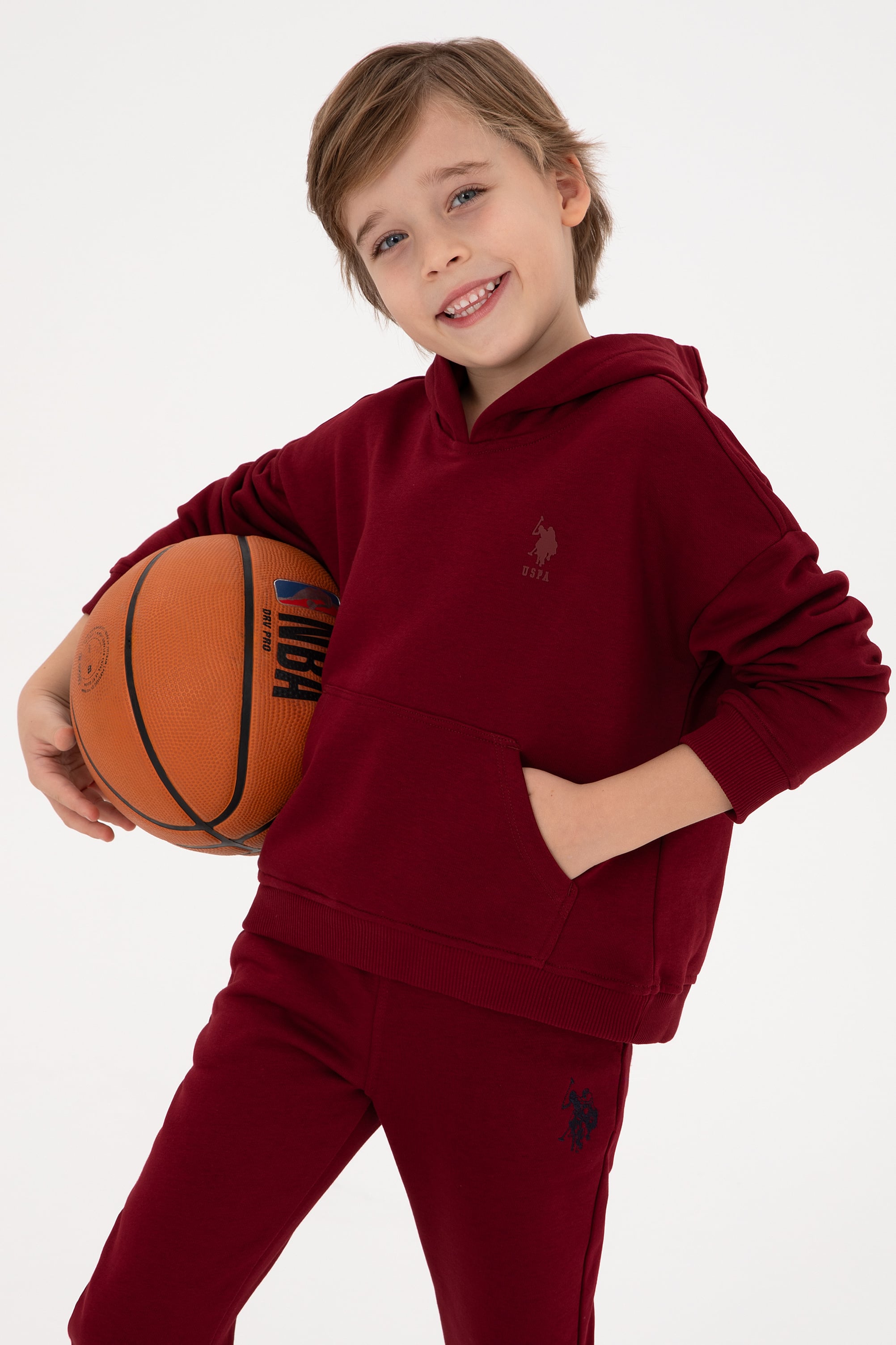 - Erkek Çocuk Bordo Kapüşonlu Basic Sweatshirt