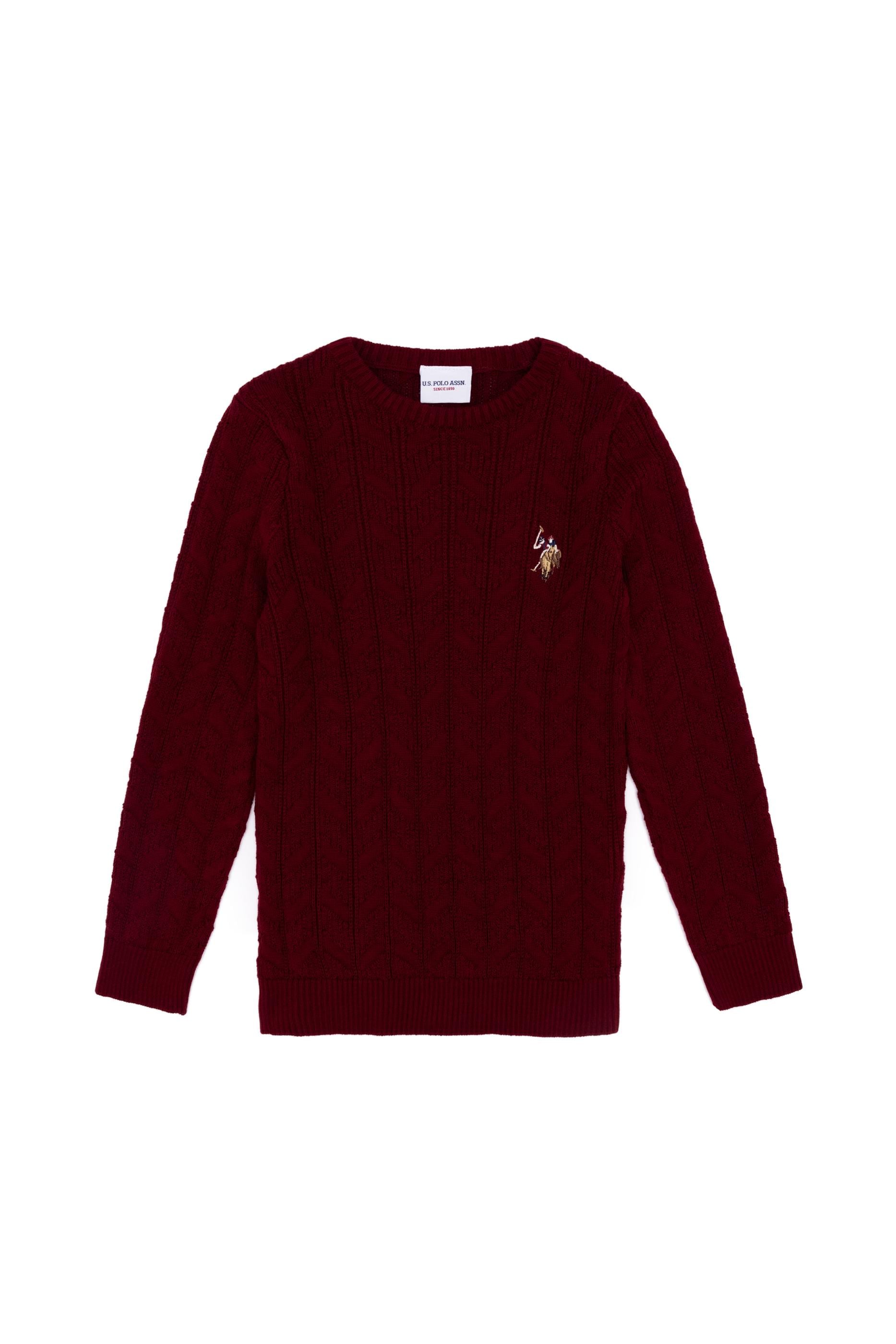 Erkek Çocuk Bordo Bisiklet Yaka Triko Kazak