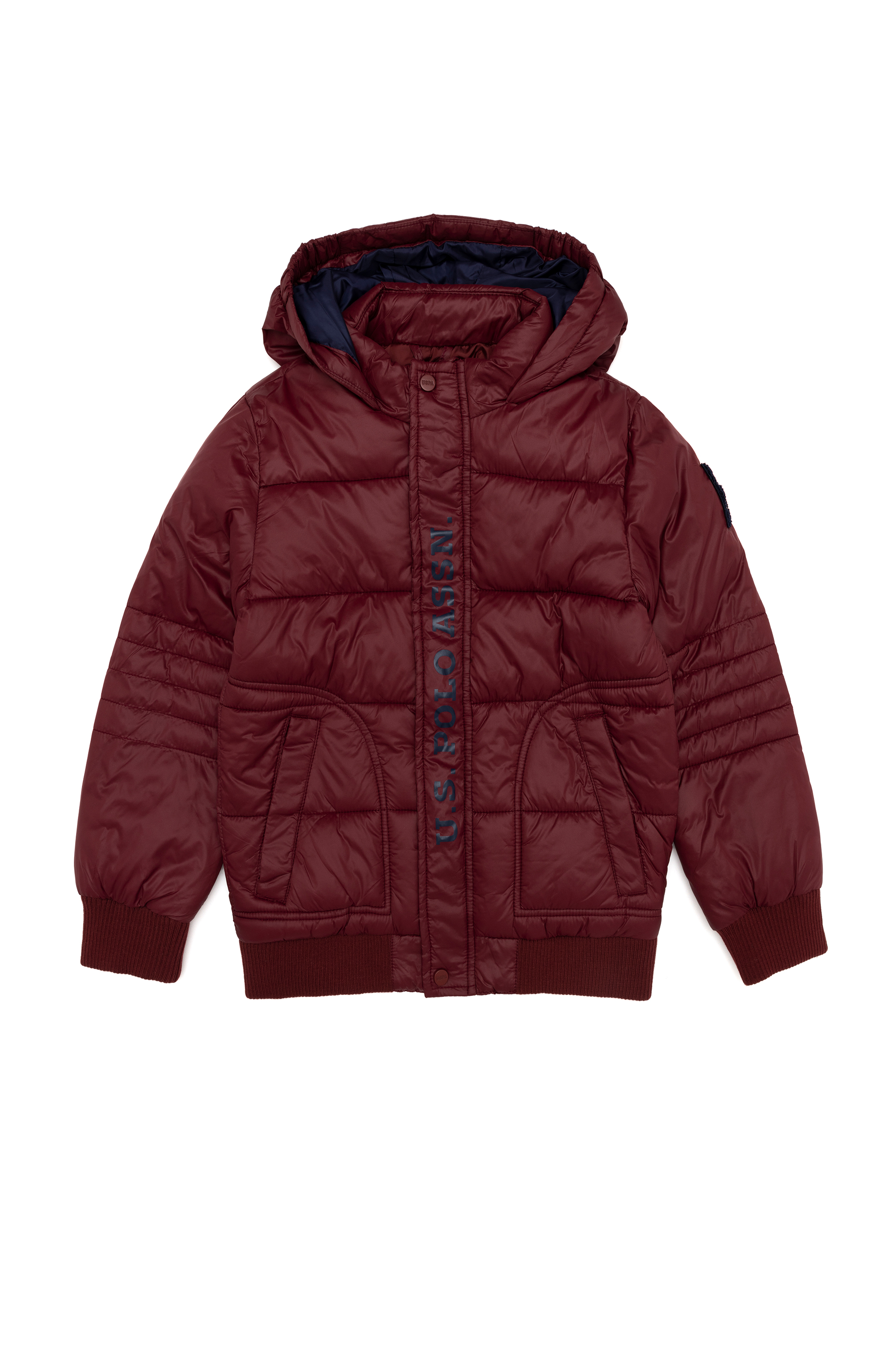 Erkek Çocuk Bordo Kapüşonlu Mont
