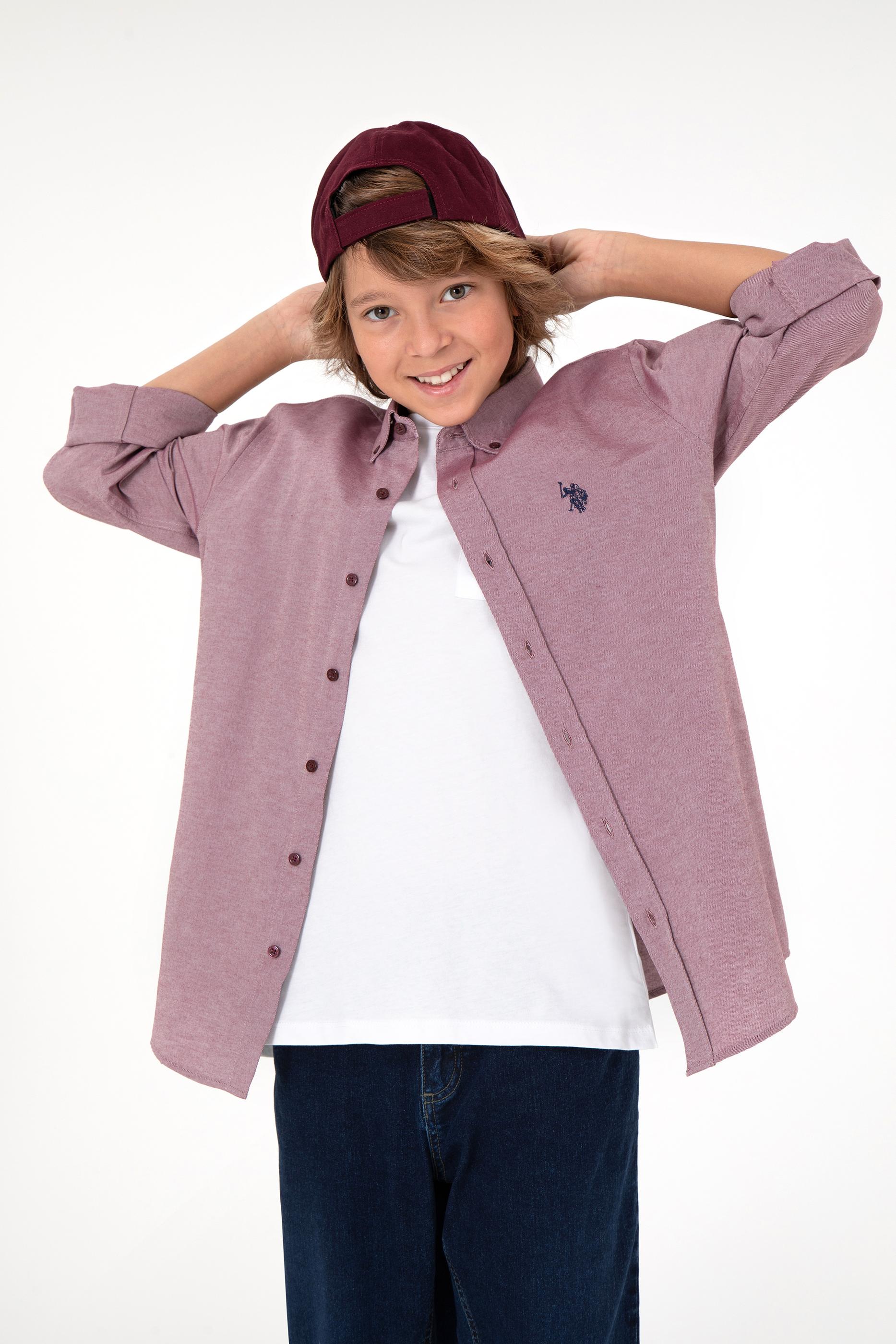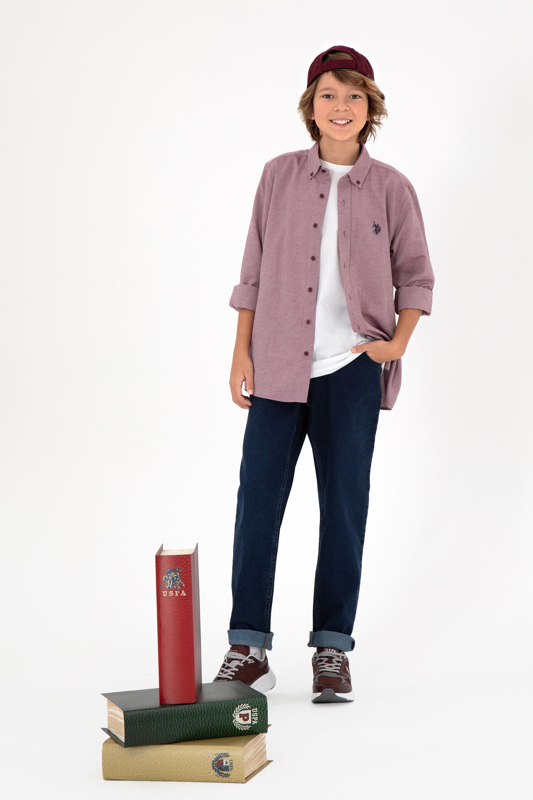 - Erkek Çocuk Bordo Uzun Kollu Basic Gömlek