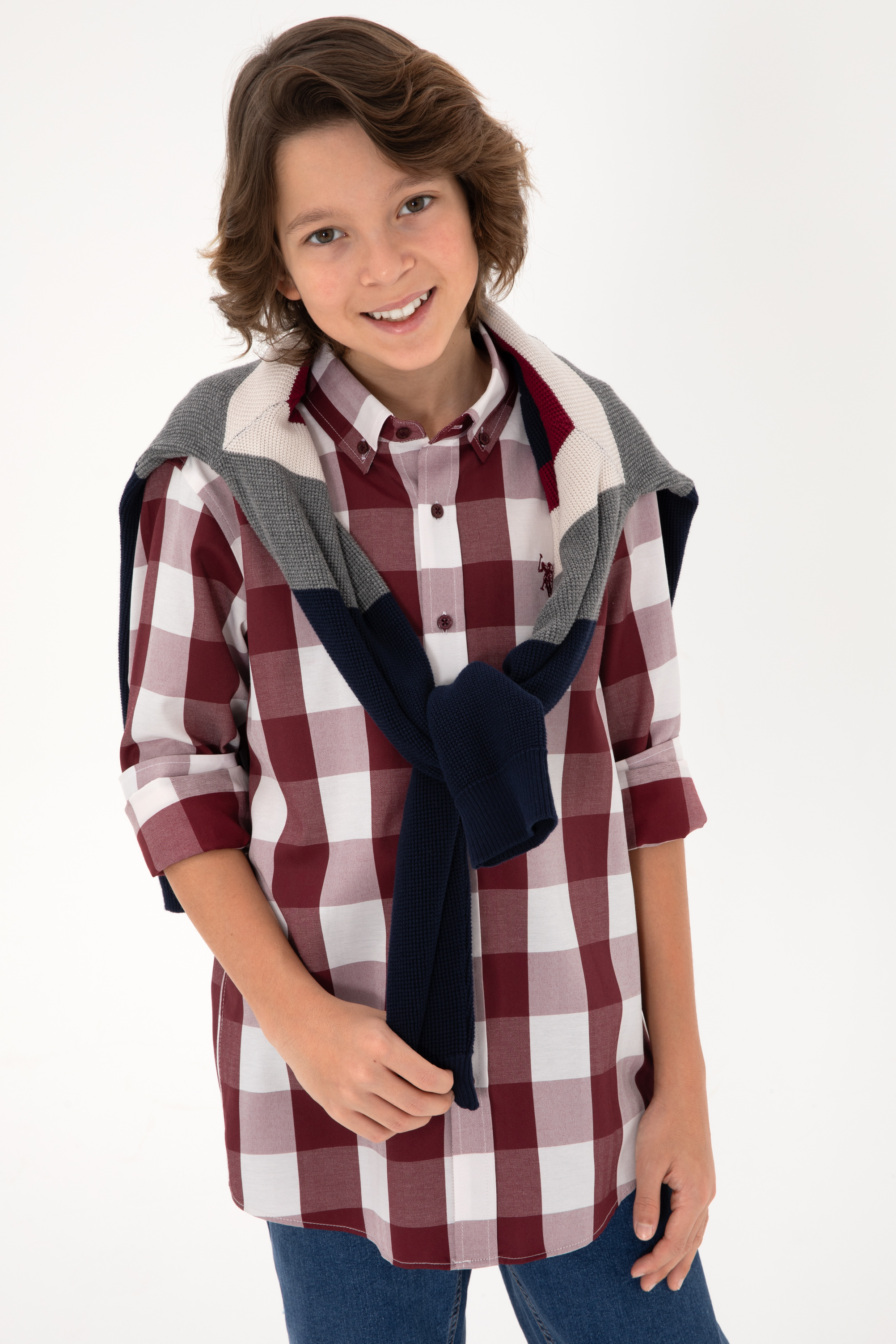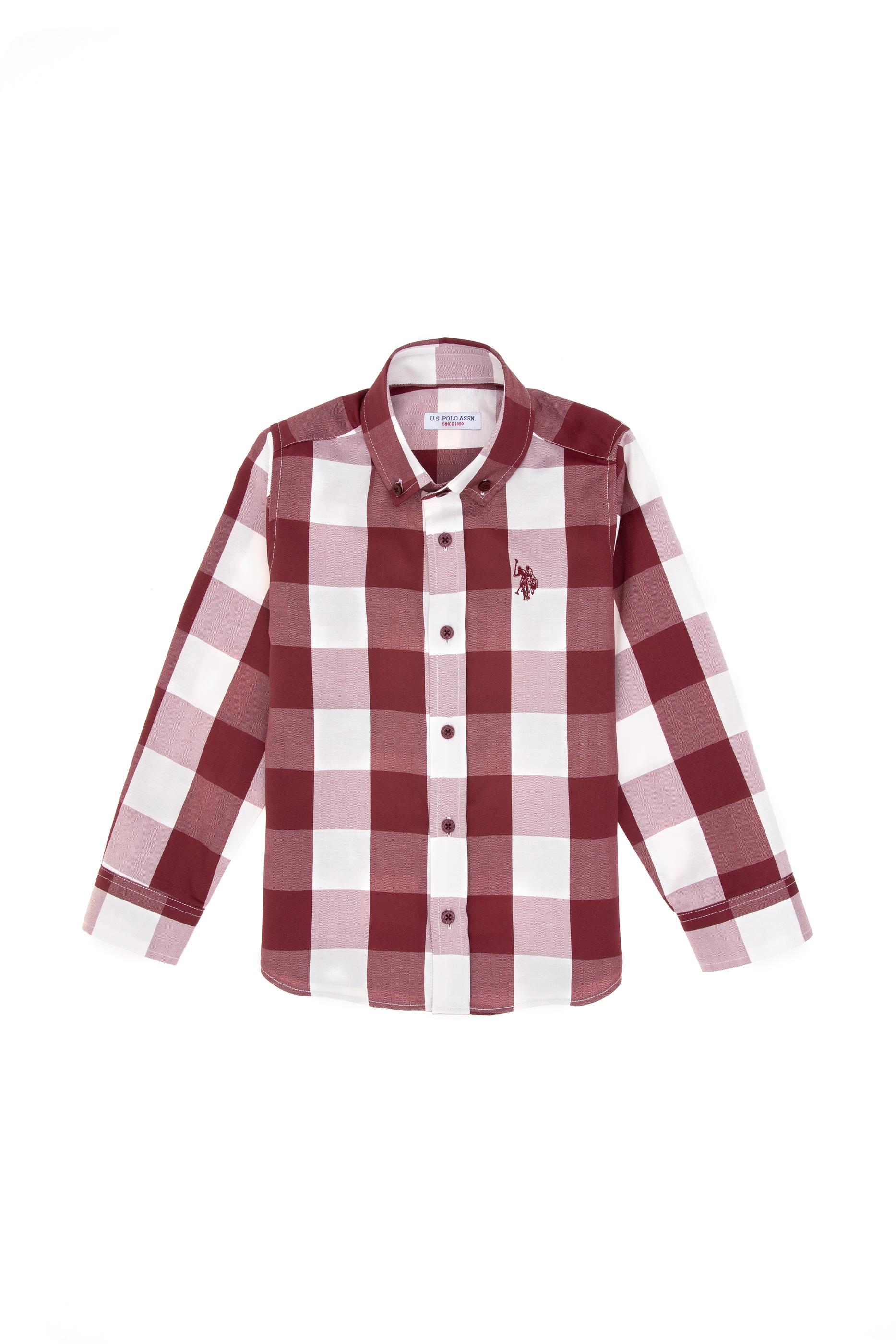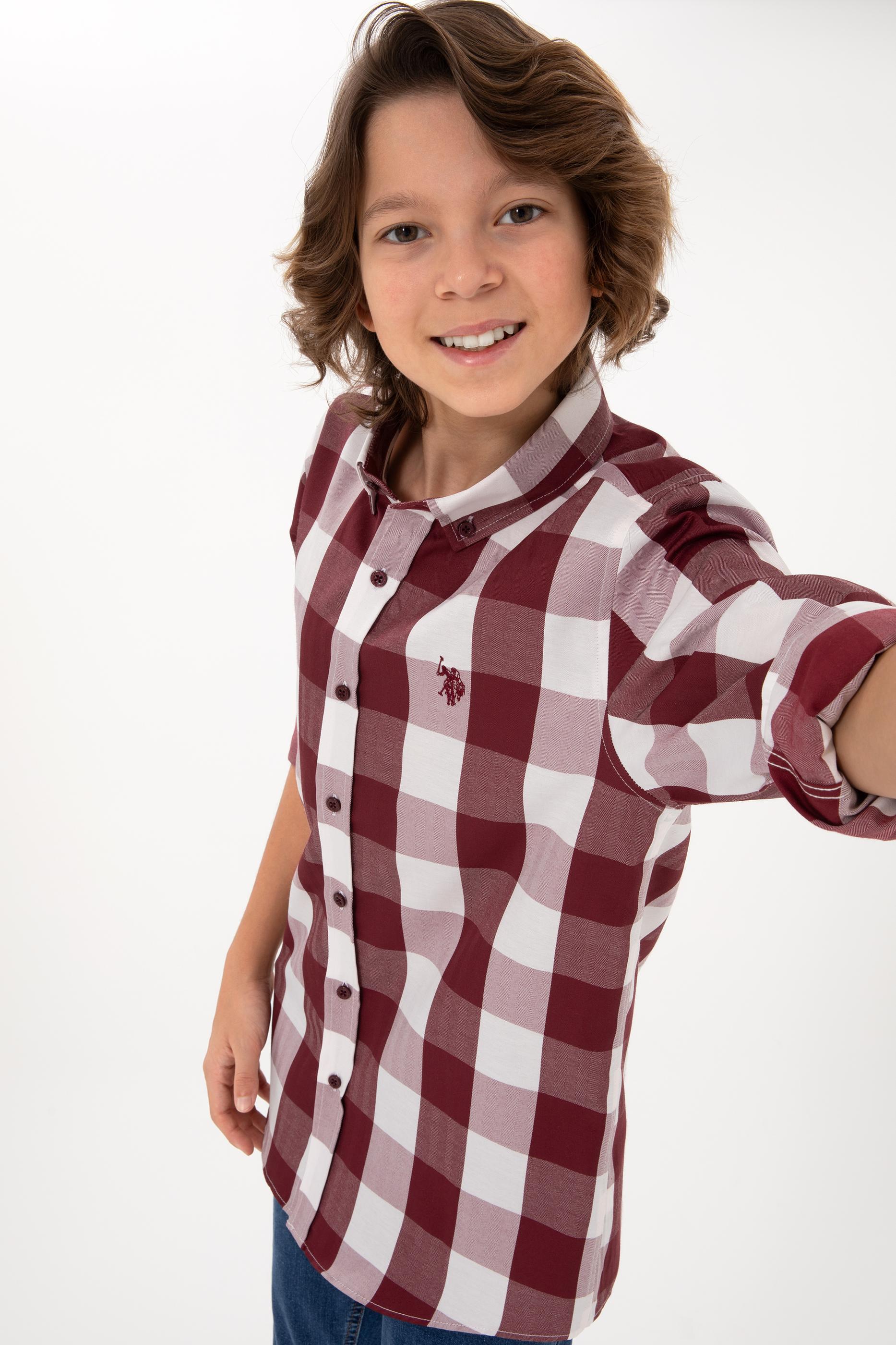 Erkek Çocuk Bordo Ekose Uzun Kollu Gömlek