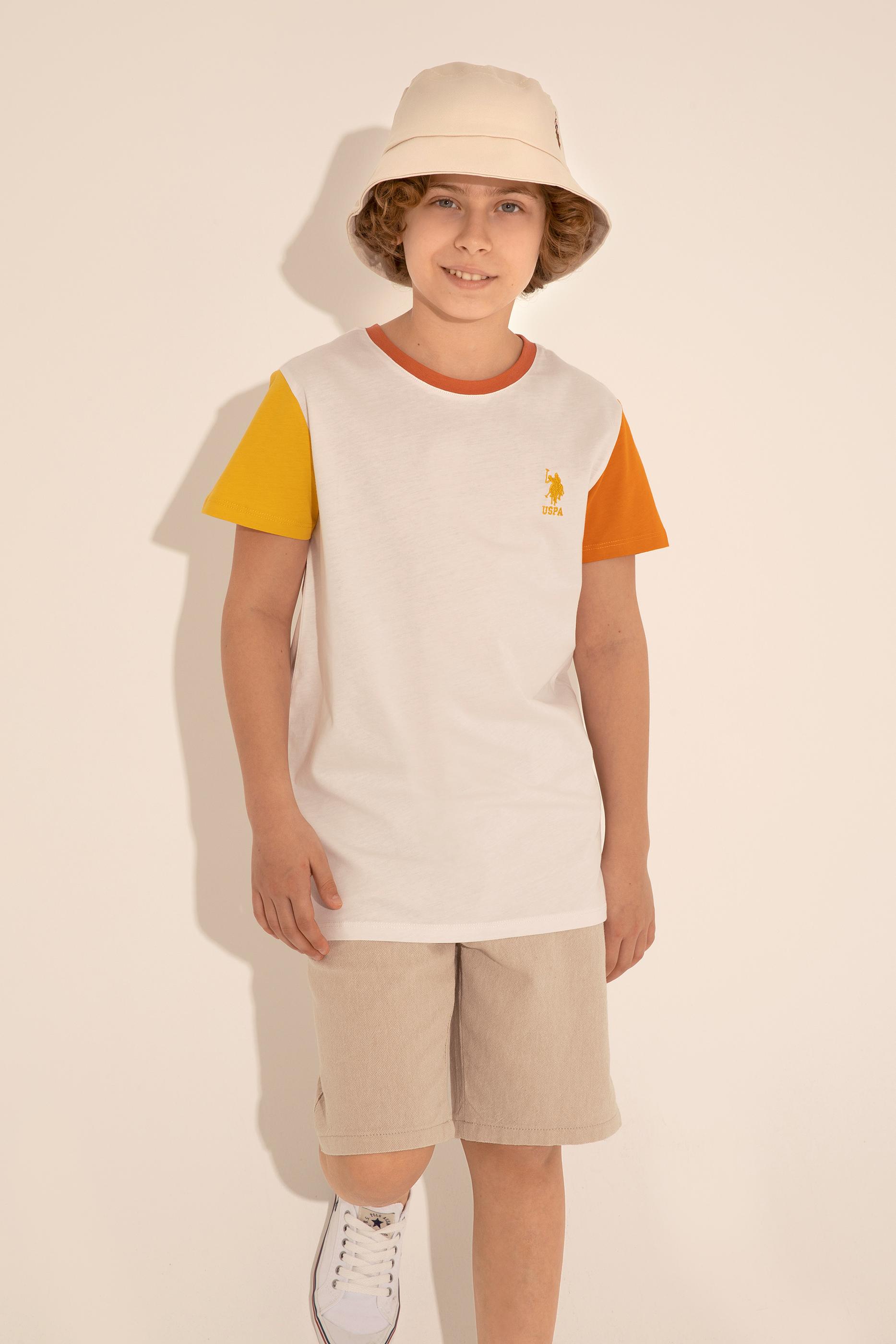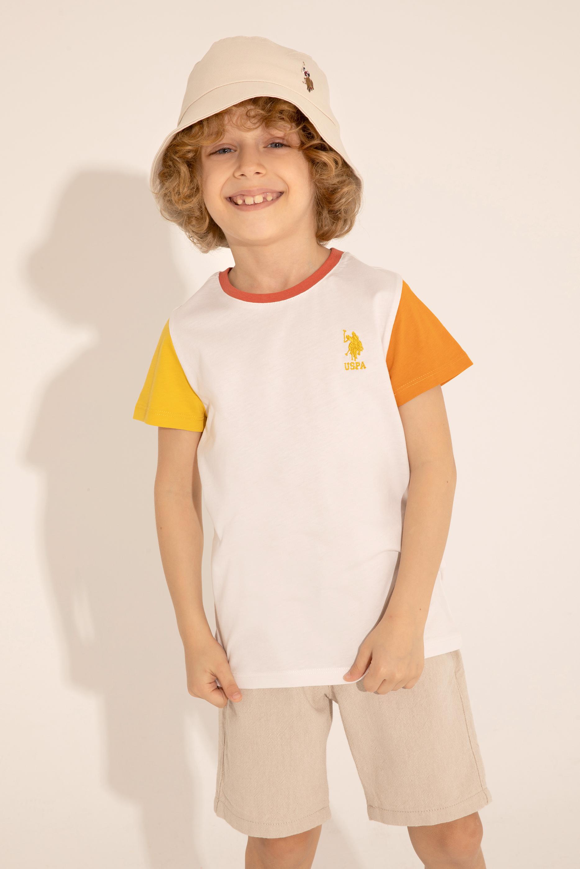 Erkek Çocuk Ekru Bisiklet Yaka Tişört