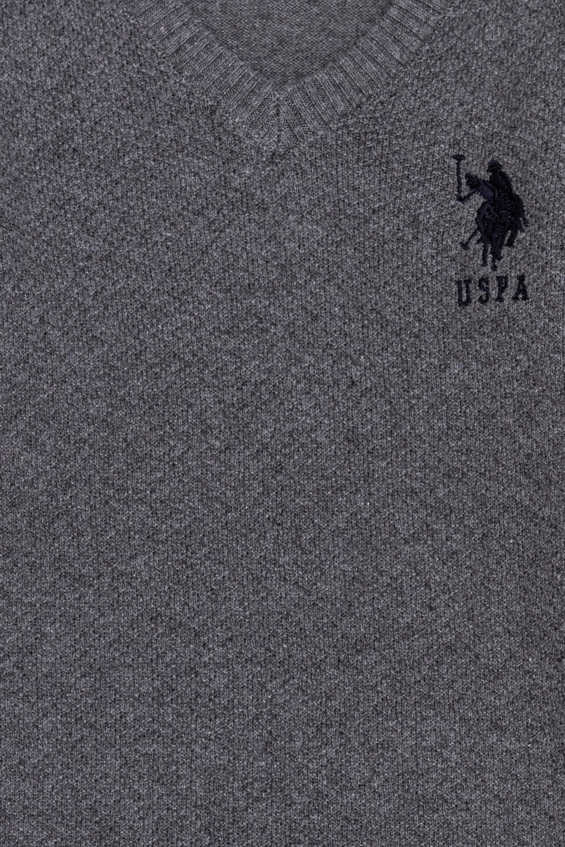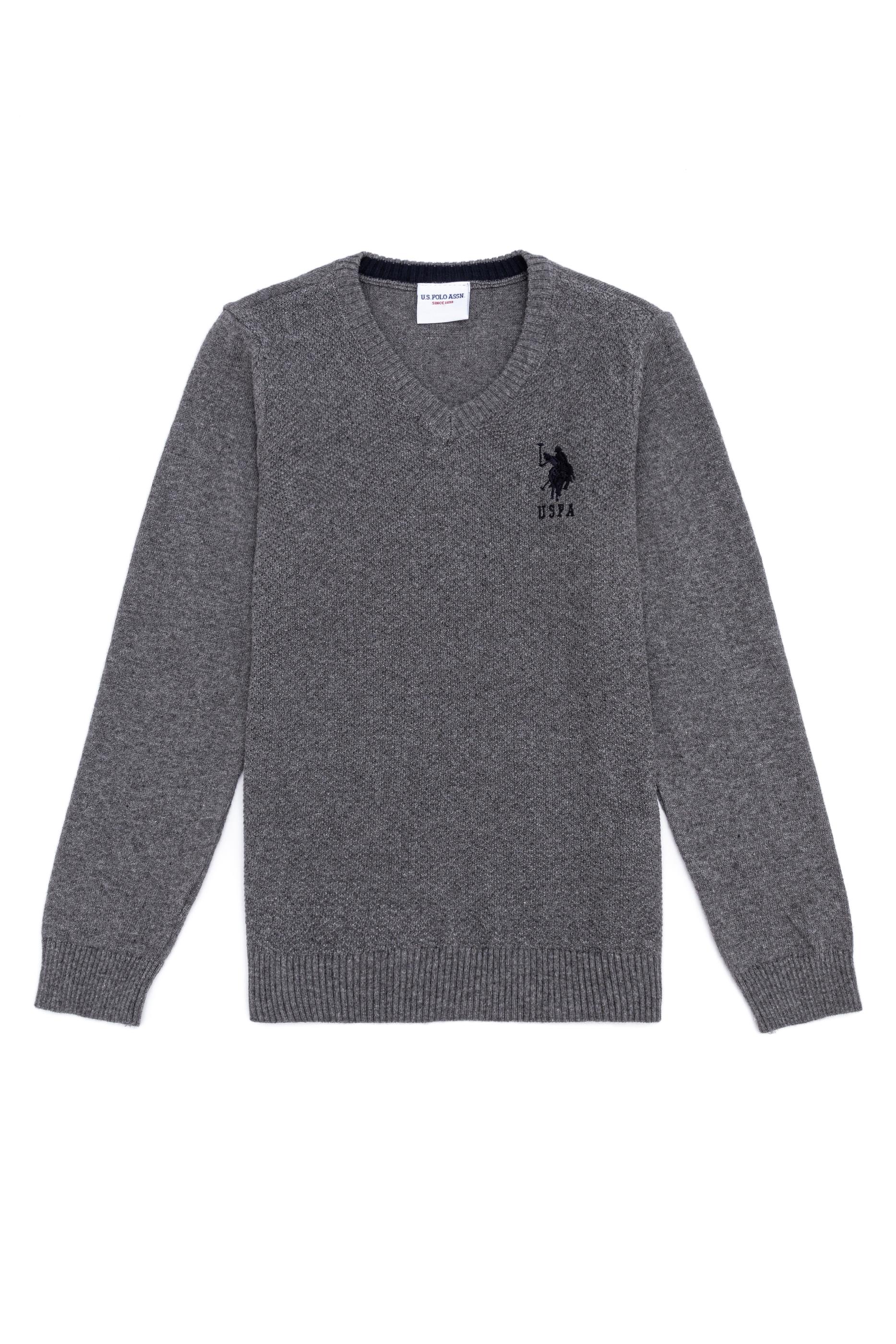 Erkek Çocuk Gri Melanj V Yaka Triko Kazak