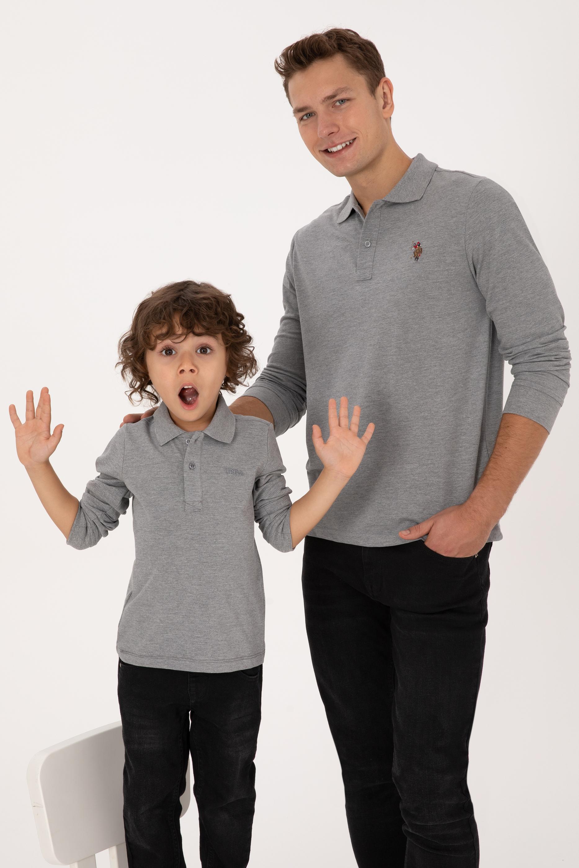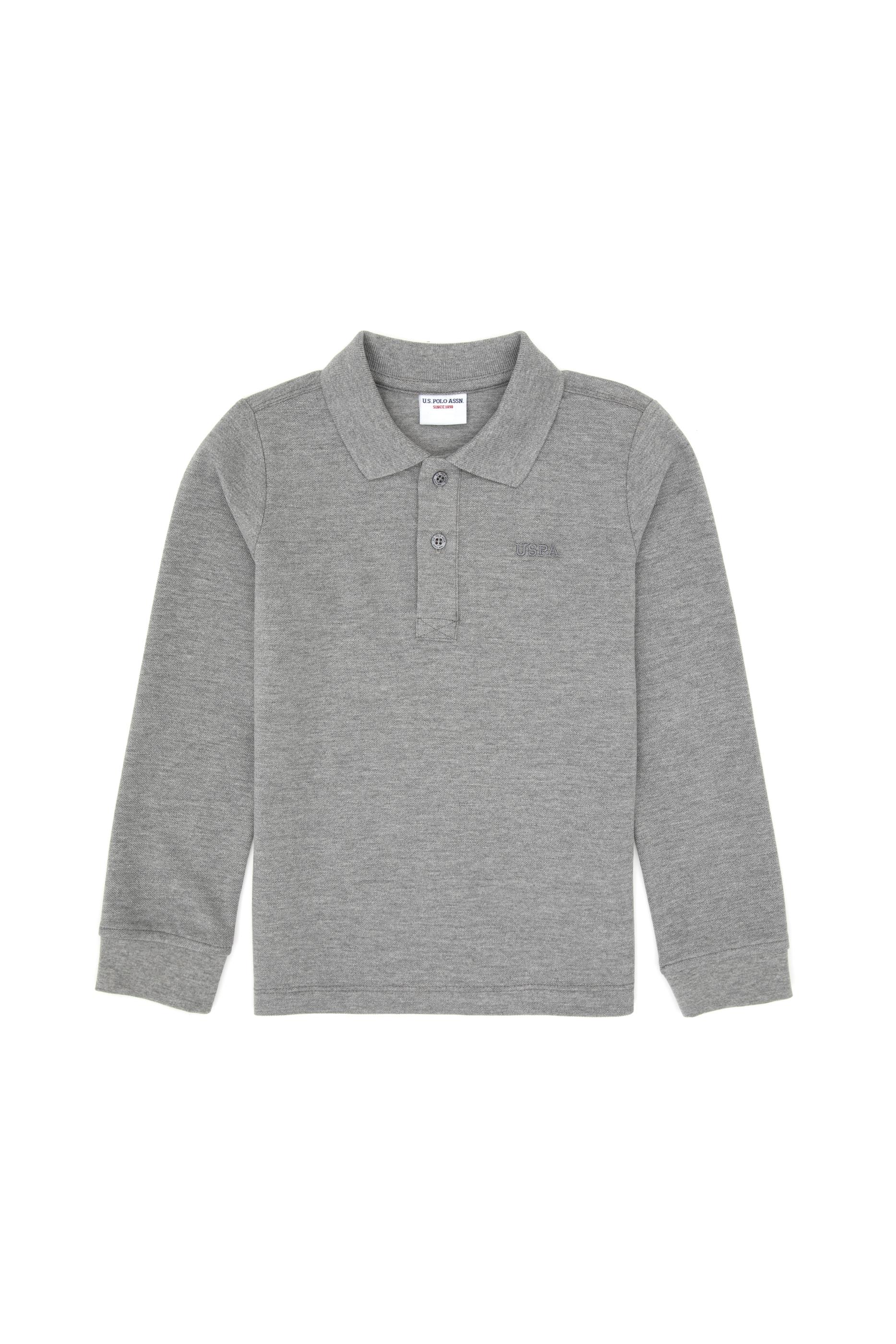 Erkek Çocuk Gri Melanj Basic Polo Yaka Sweatshirt