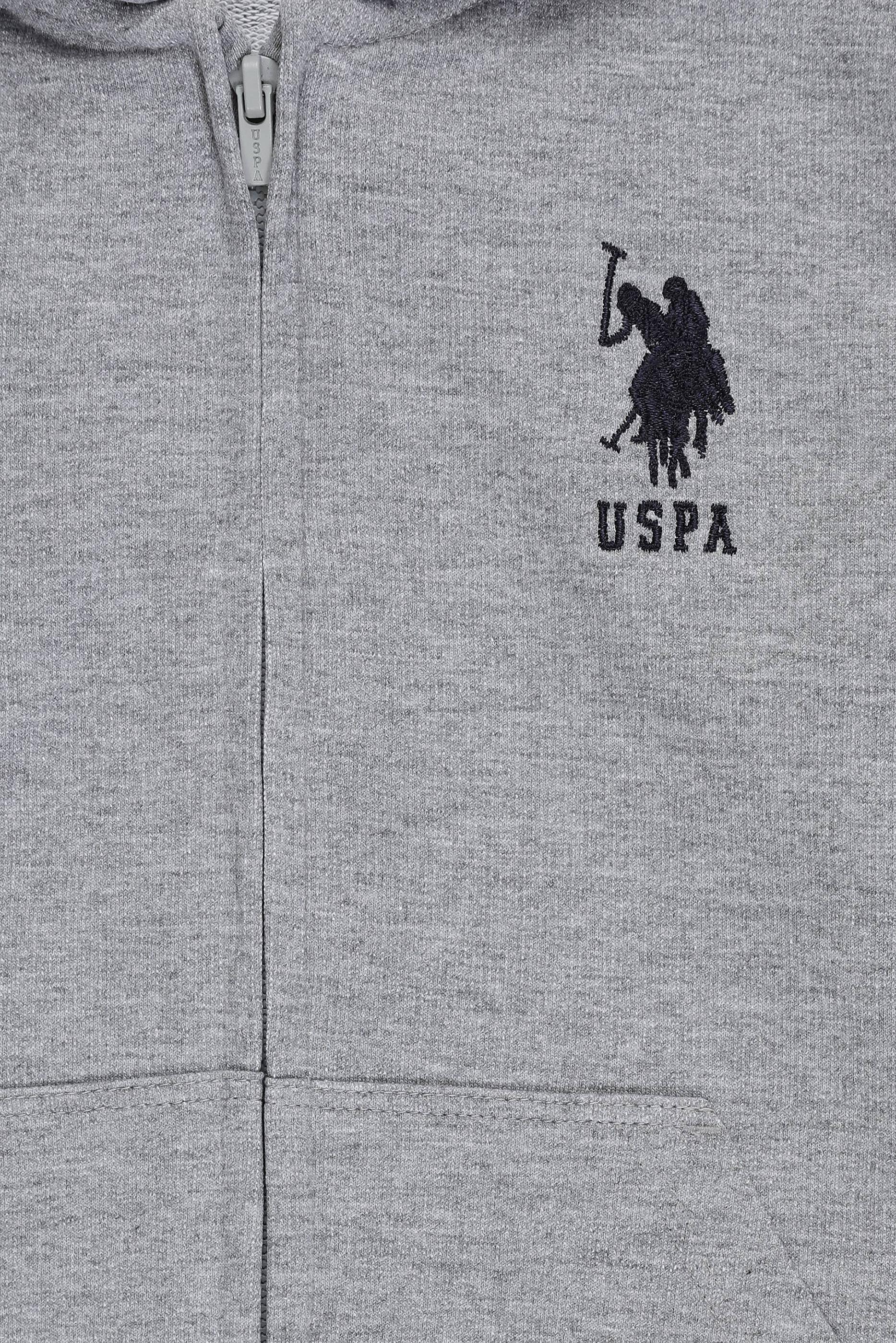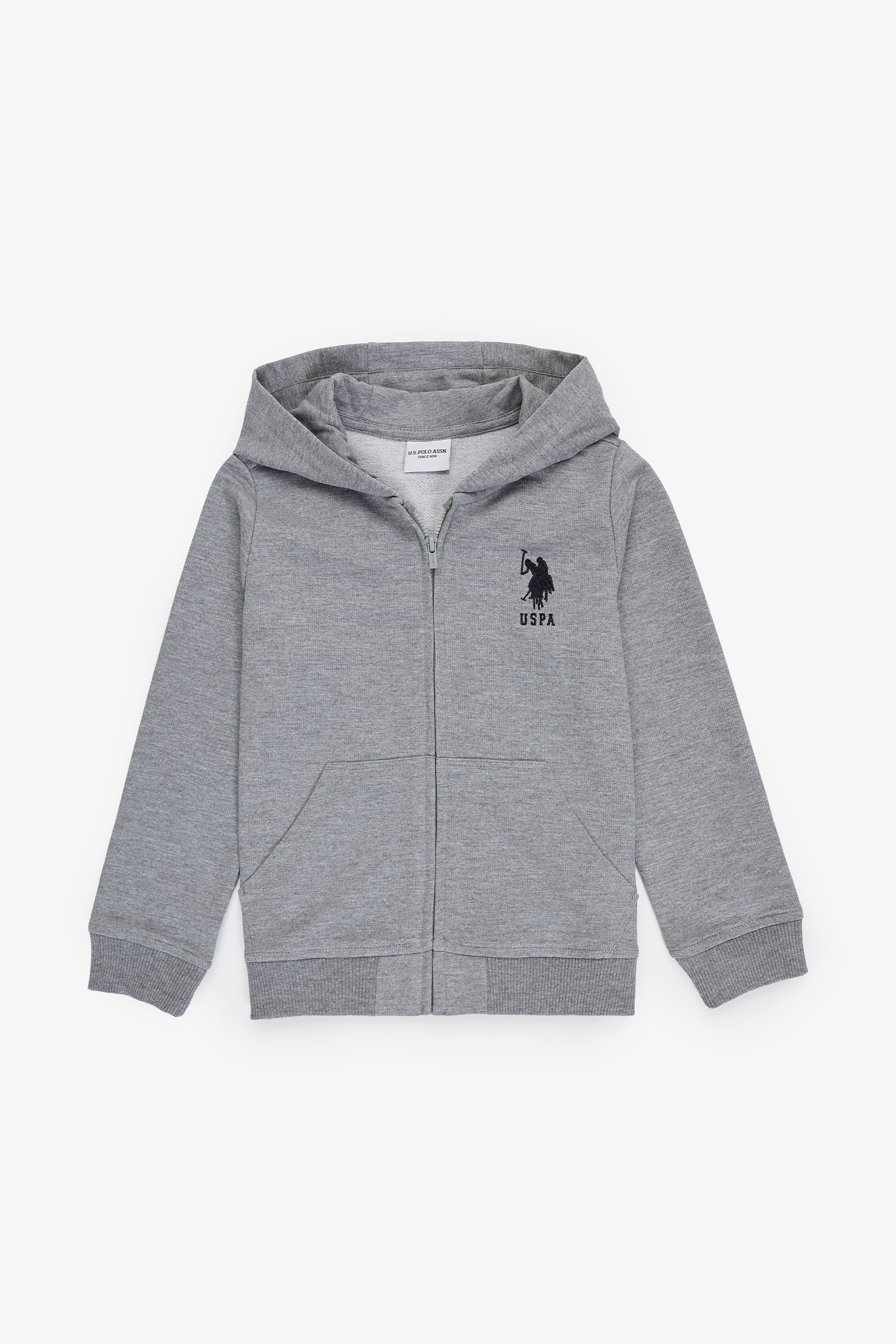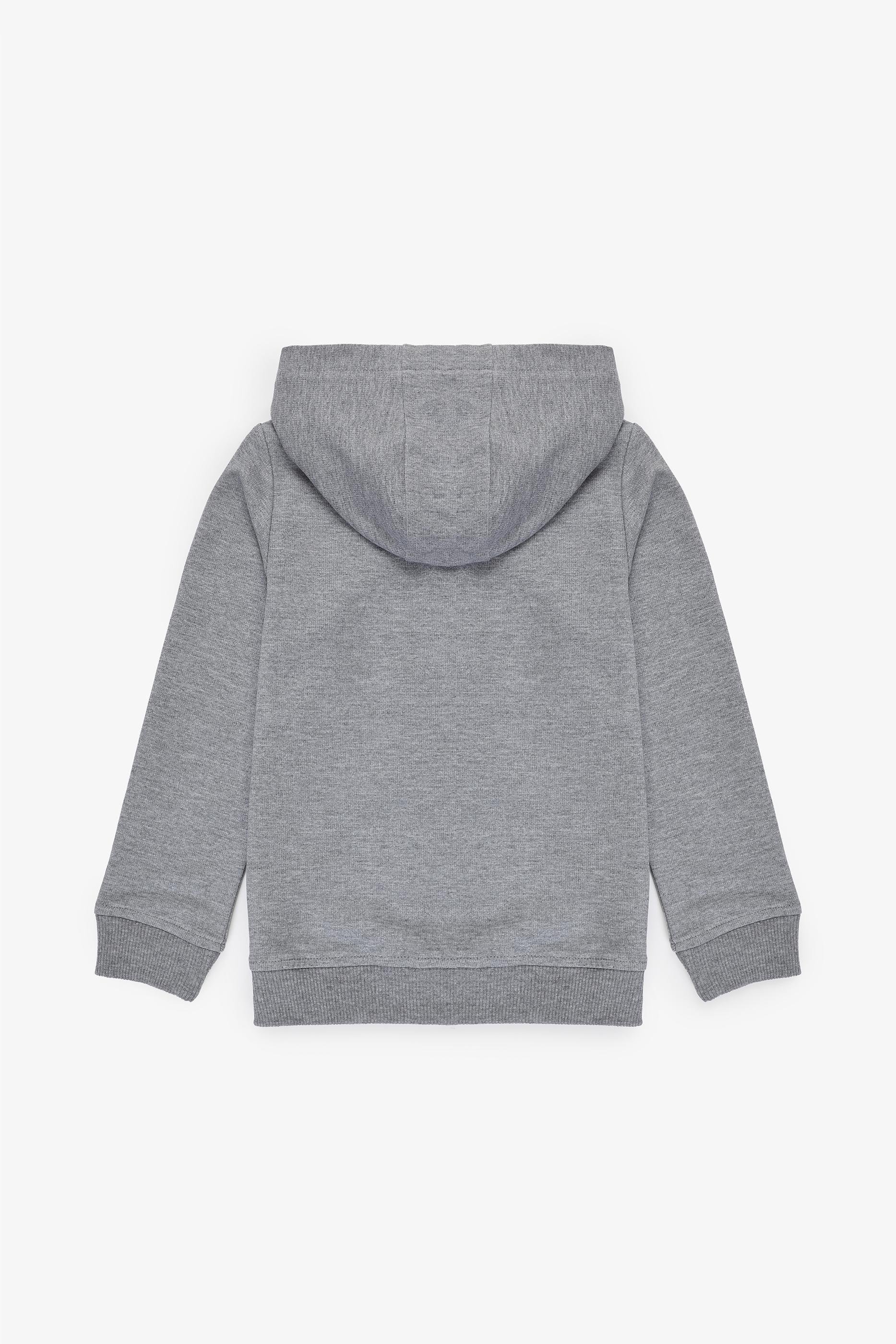 - Erkek Çocuk Gri Melanj Kapüşonlu İnce Fermuarlı Basic Sweatshirt