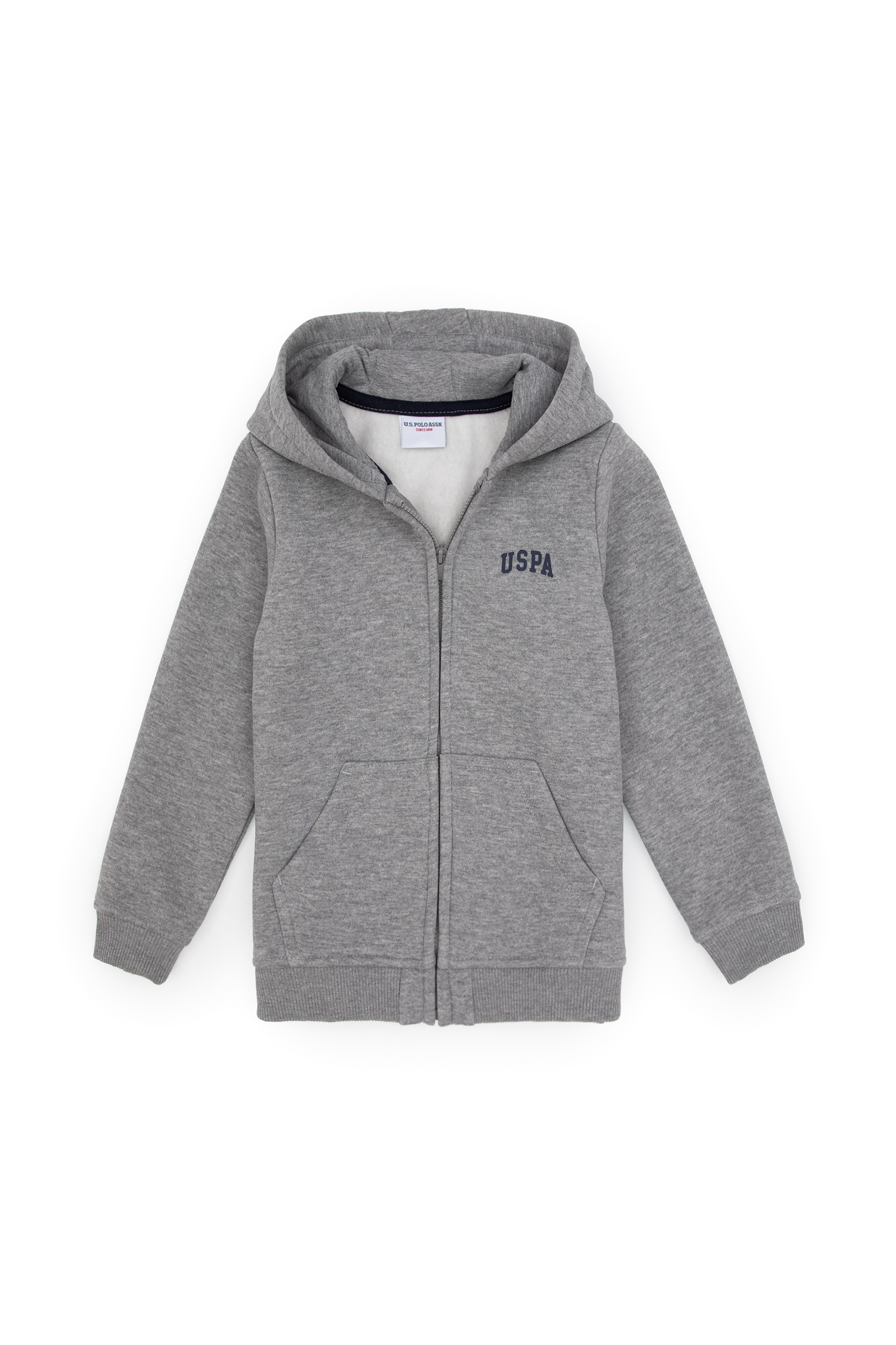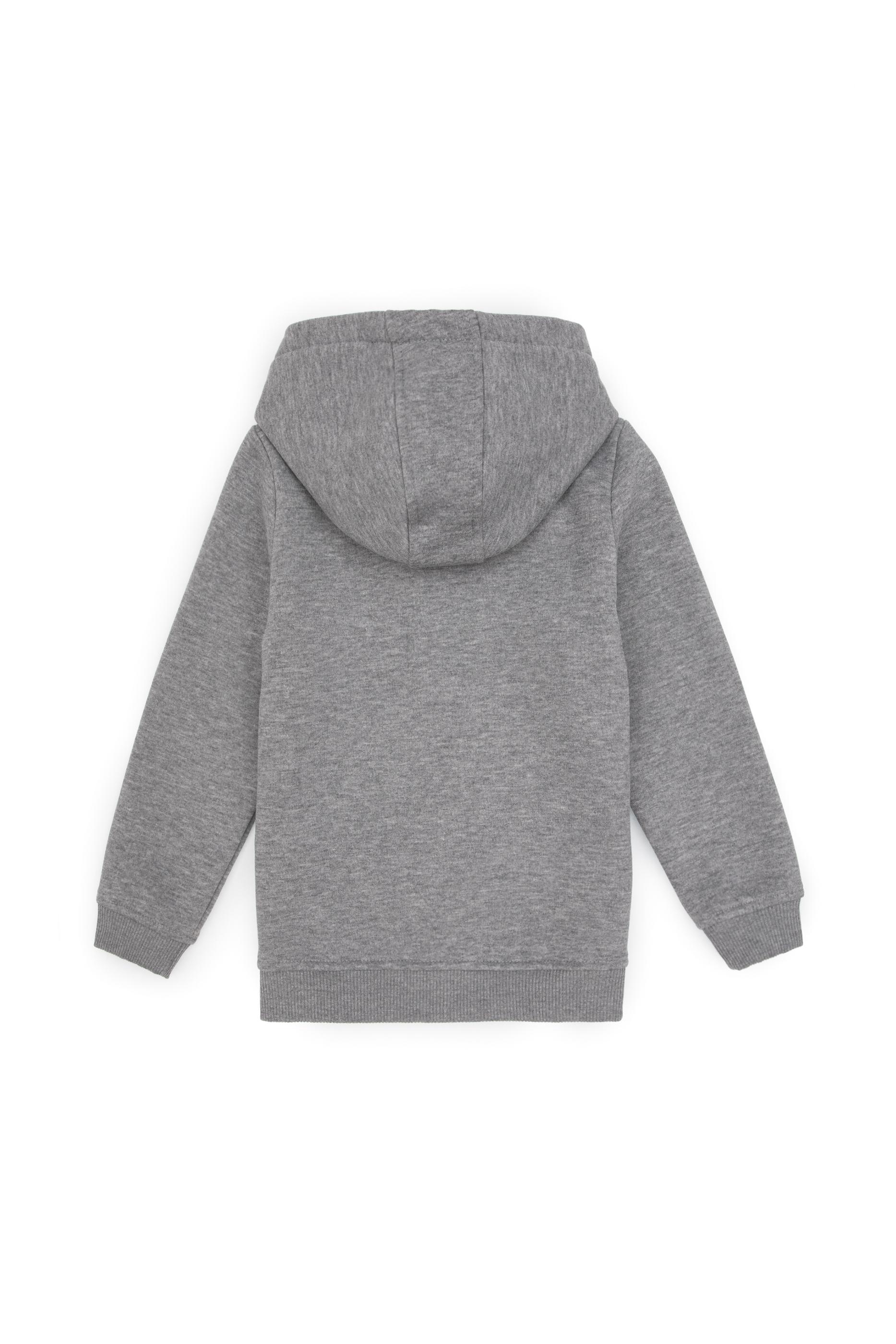 - Erkek Çocuk Gri Melanj Fermuarlı Kapüşonlu Örme Hırka