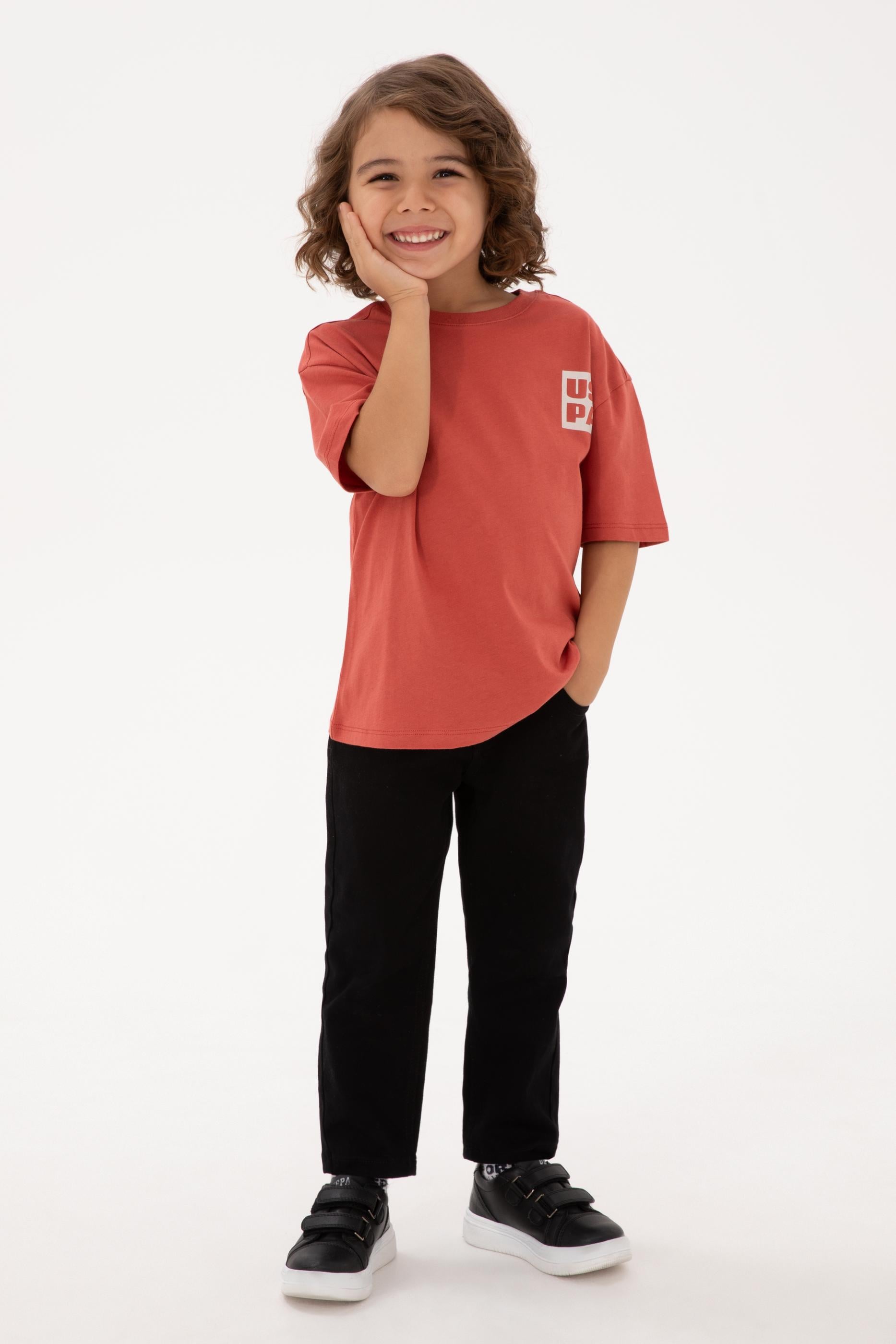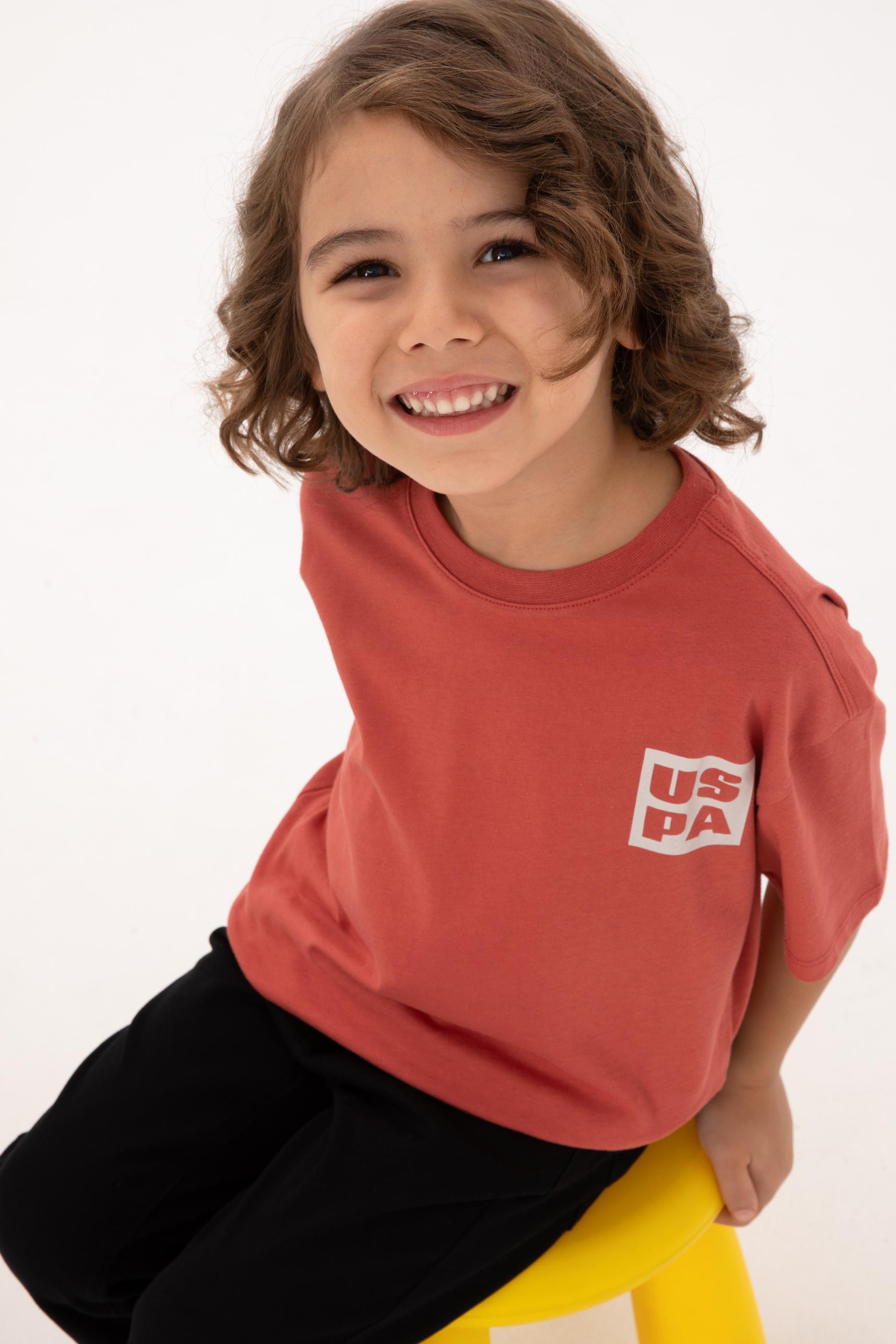 Erkek Çocuk Gül Kurusu Bisiklet Yaka Tişört