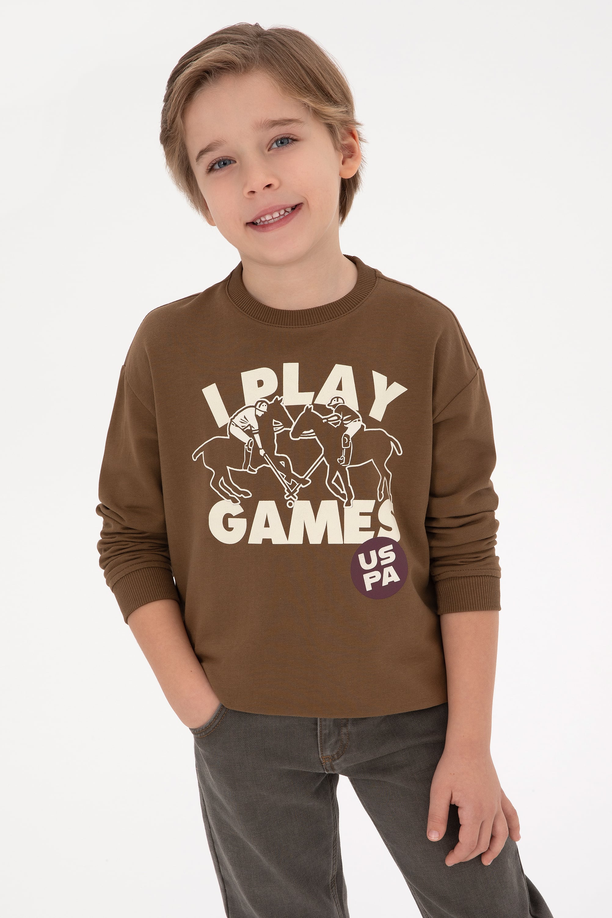 - Erkek Çocuk Haki Bisiklet Yaka Sweatshirt