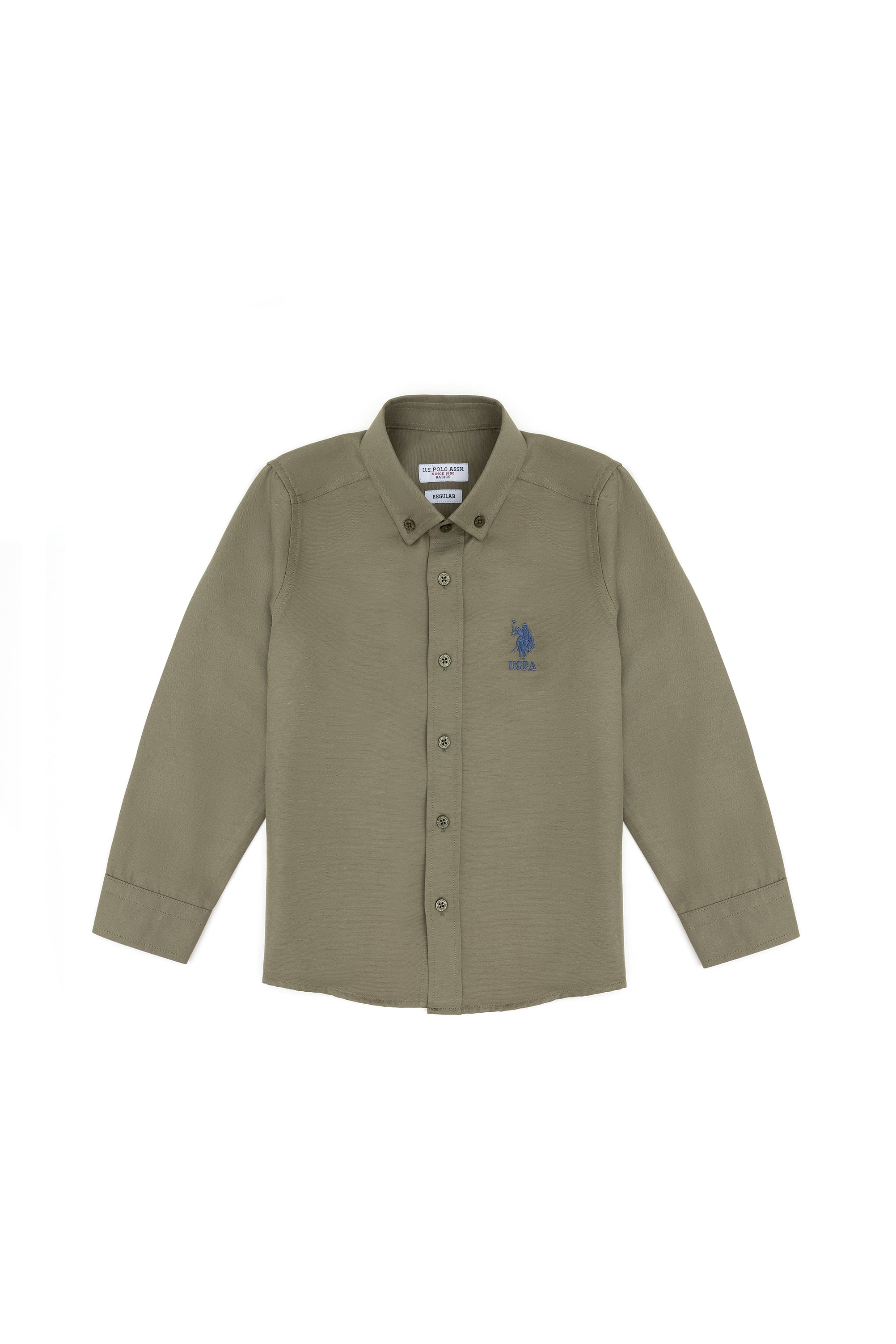 Erkek Çocuk Haki Uzun Kollu Basic Gömlek