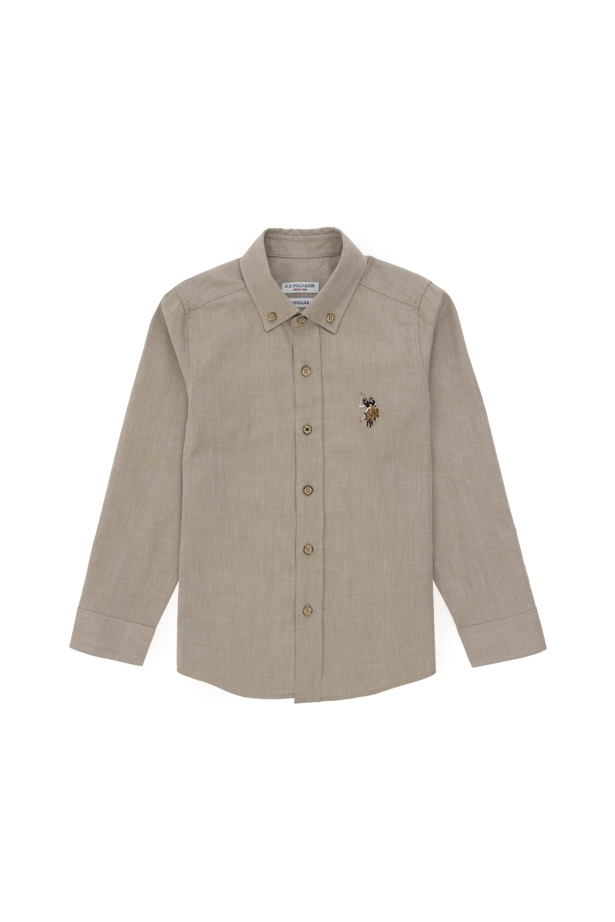 - Erkek Çocuk Haki Uzun Kollu Basic Gömlek