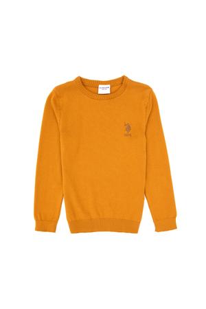 "name": "Erkek Çocuk Hardal Bisiklet Yaka Basic Kazak",