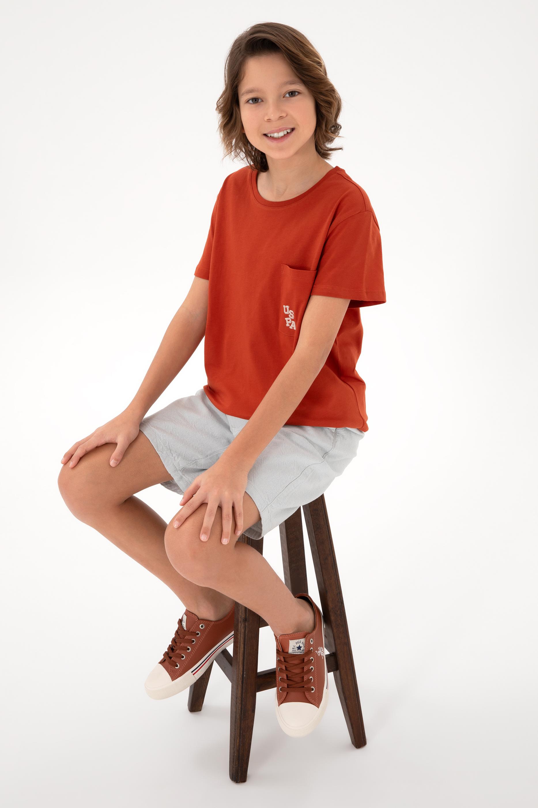 Erkek Çocuk Kiremit Bisiklet Yaka Tişört