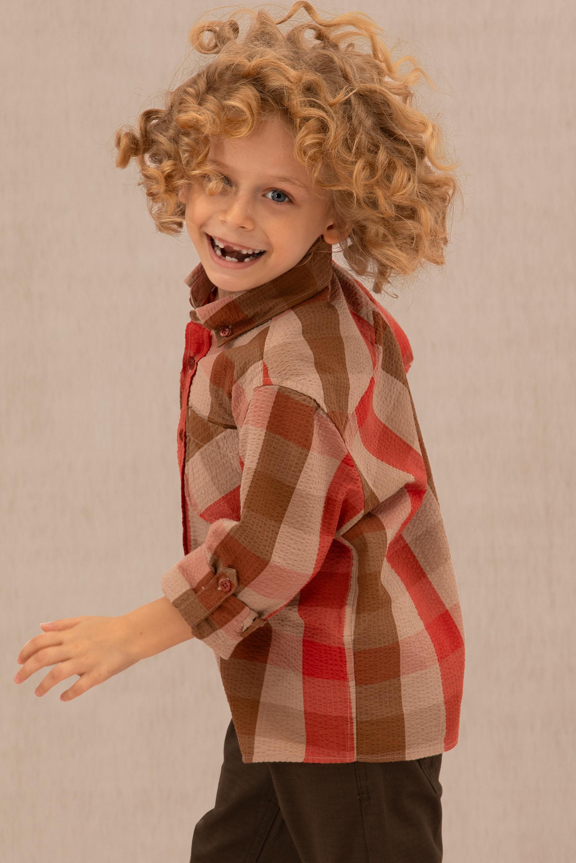 - Erkek Çocuk Kiremit Uzun Kollu Gömlek