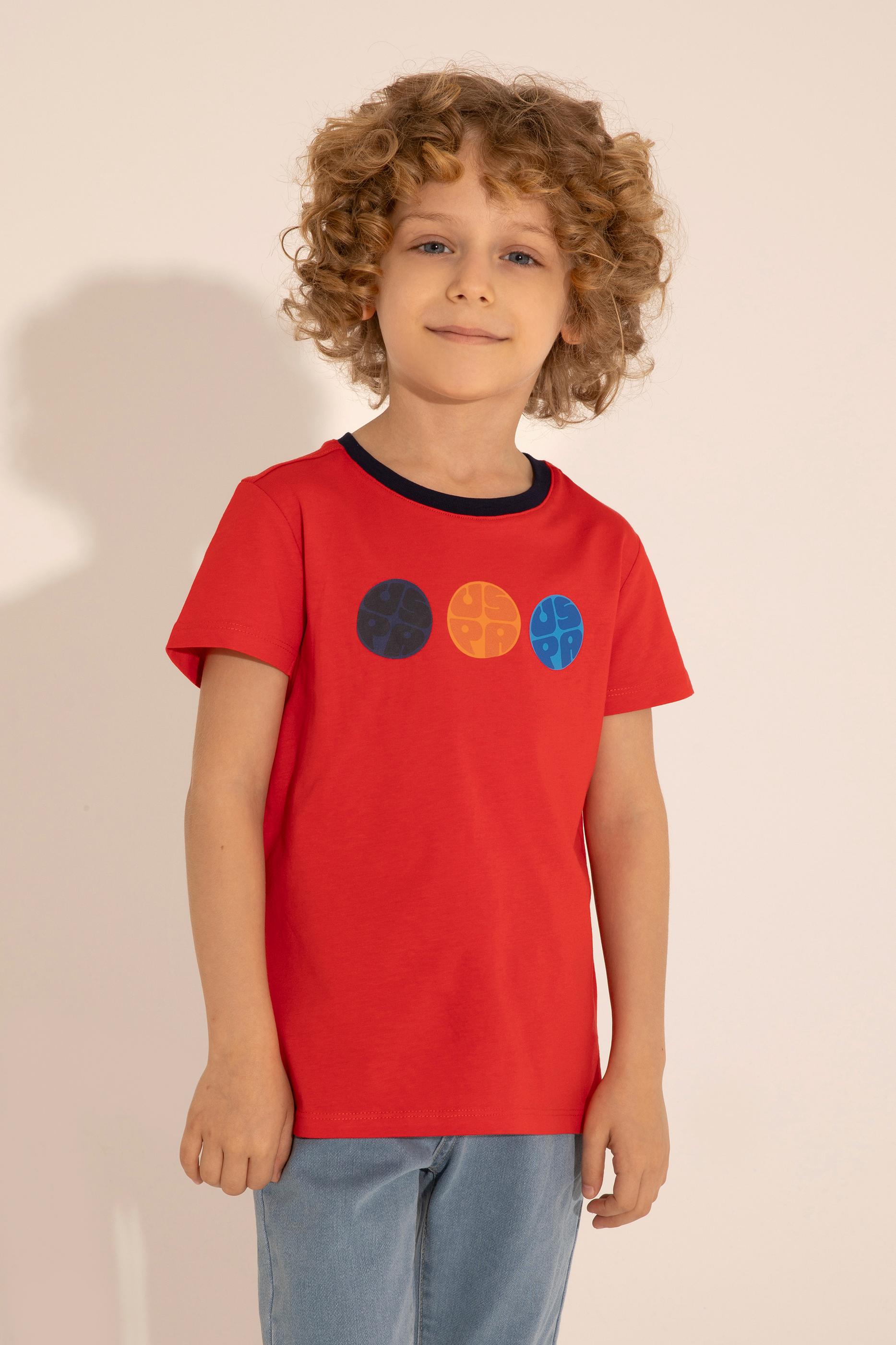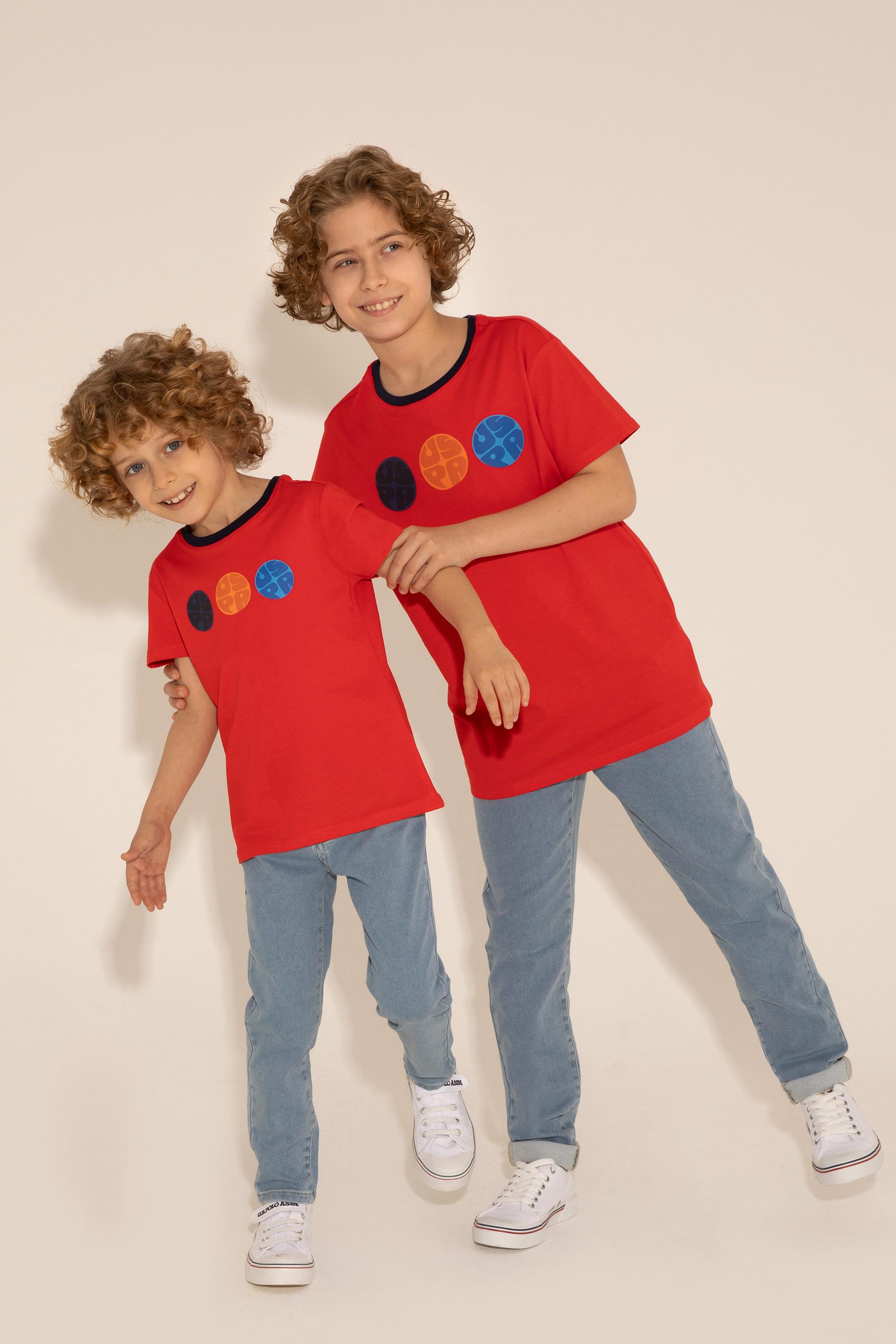 - Erkek Çocuk Kırmızı Bisiklet Yaka Tişört