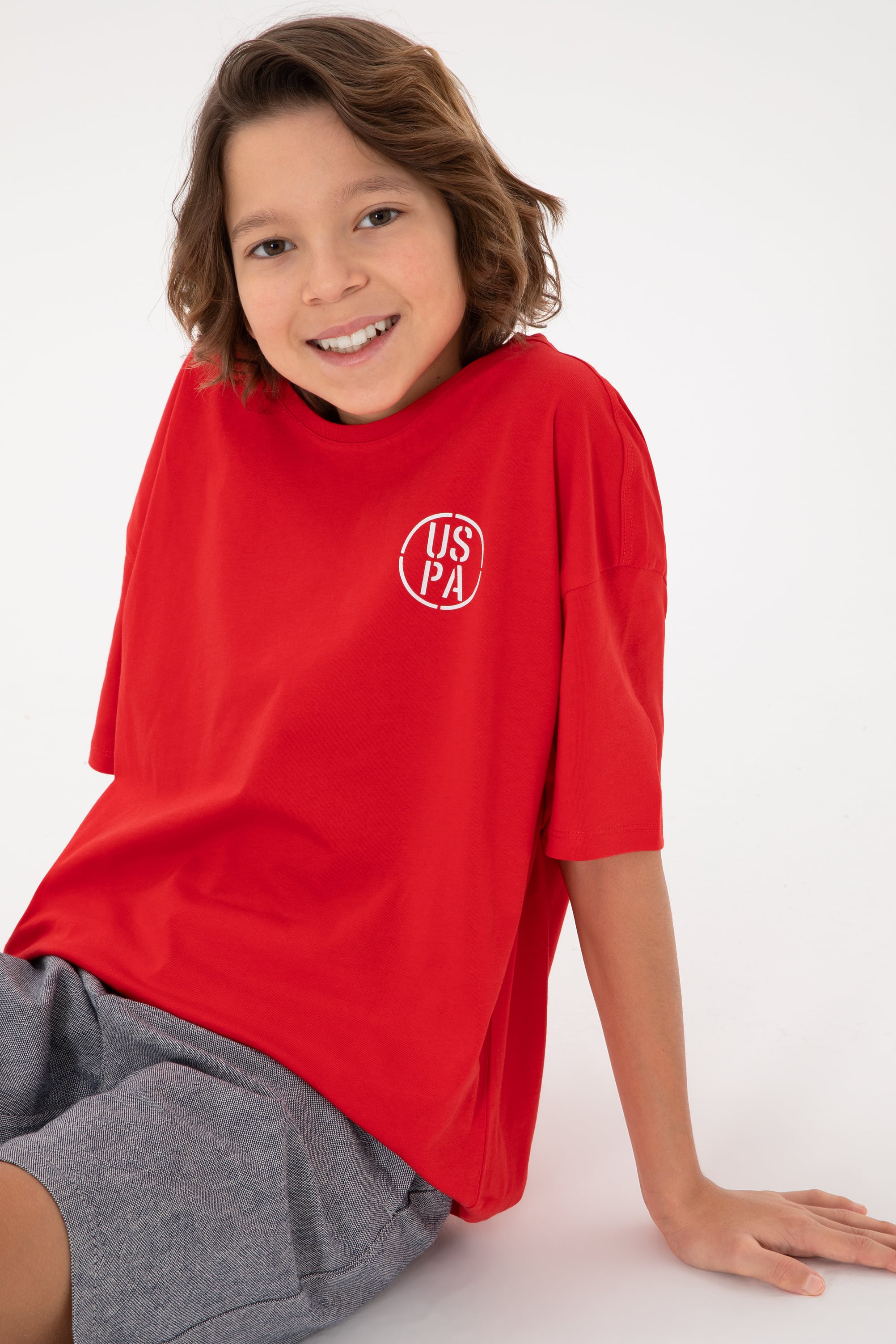 Erkek Çocuk Kırmızı Oversize Bisiklet Yaka Tişört