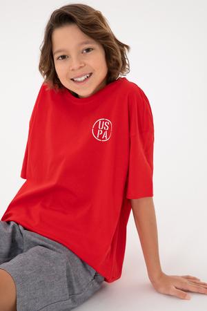 Erkek Çocuk Kırmızı Oversize Bisiklet Yaka Tişört - 50298981083