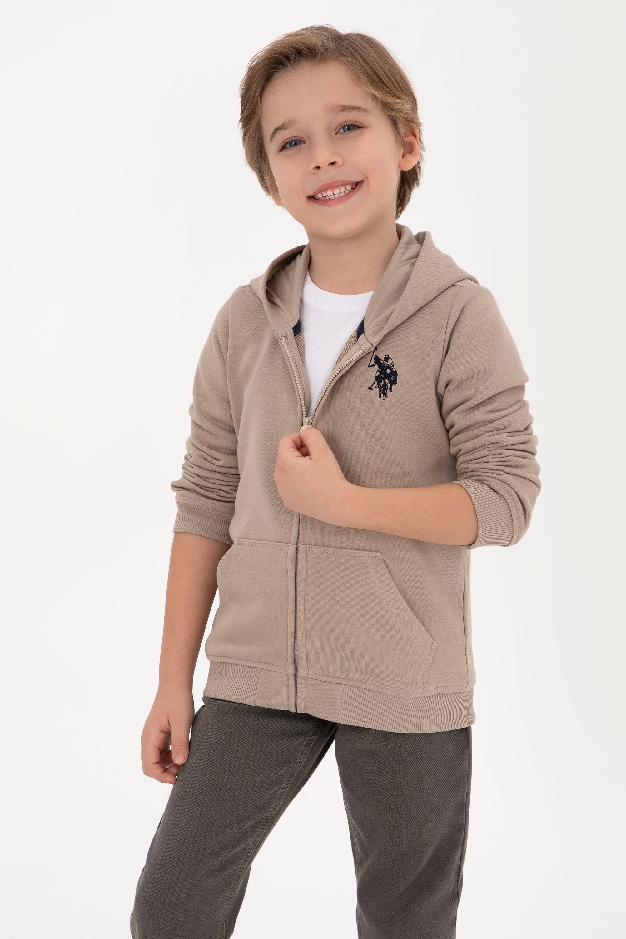 - Erkek Çocuk Koyu Bej Fermuarlı Kapüşonlu Sweatshirt
