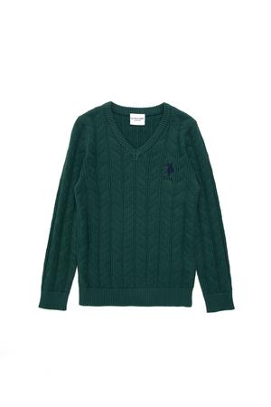 Erkek Çocuk Koyu Yeşil Basic V Yaka Kazak