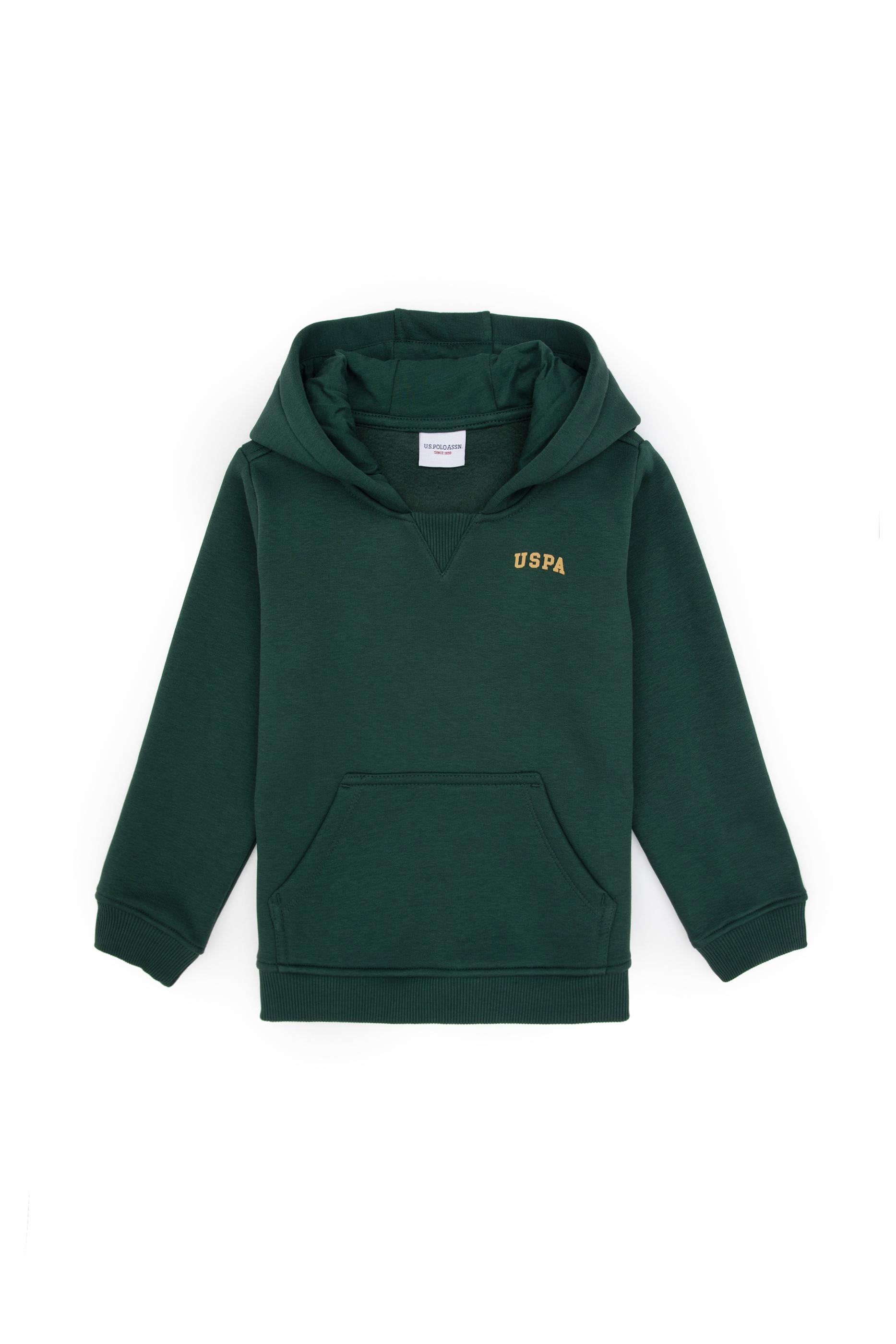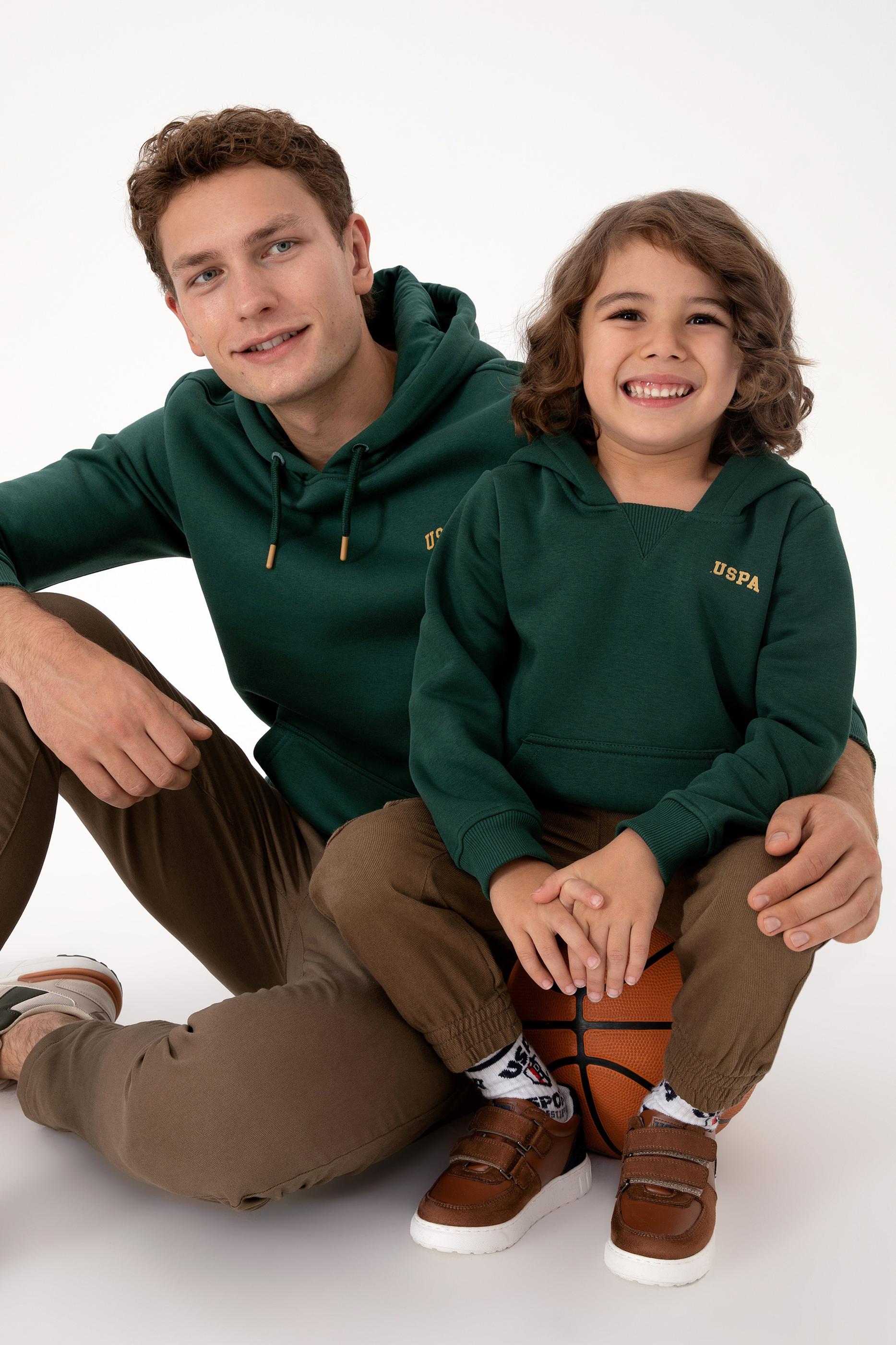 - Erkek Çocuk Koyu Yeşil Basic Kapüşonlu Şardonlu Sweatshirt