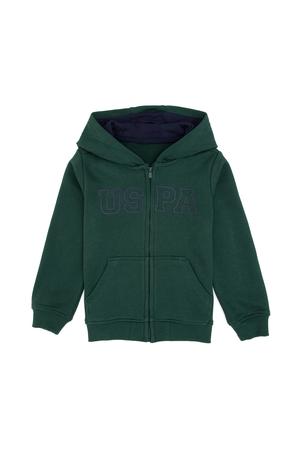 Erkek Çocuk Koyu Yeşil Fermuarlı Kapüşonlu Sweatshirt