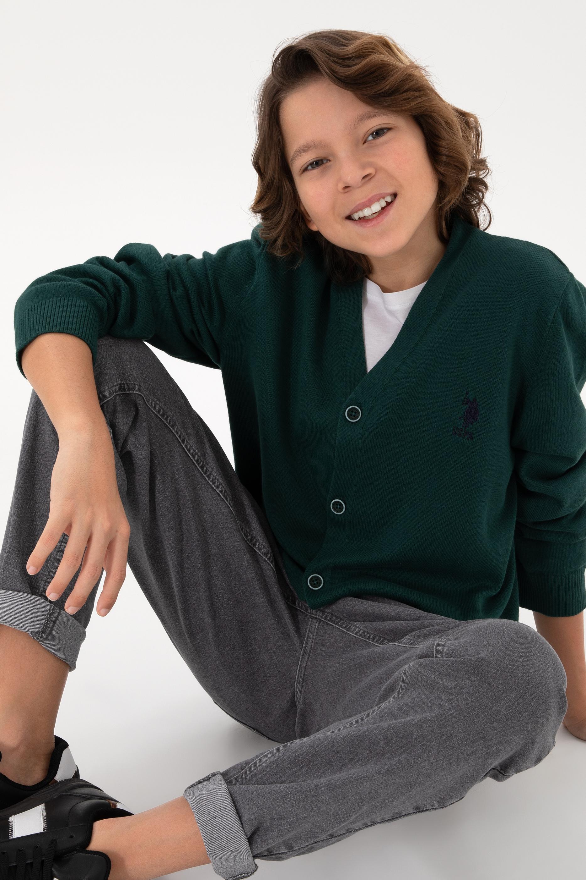 Erkek Çocuk Koyu Yeşil Triko Hırka