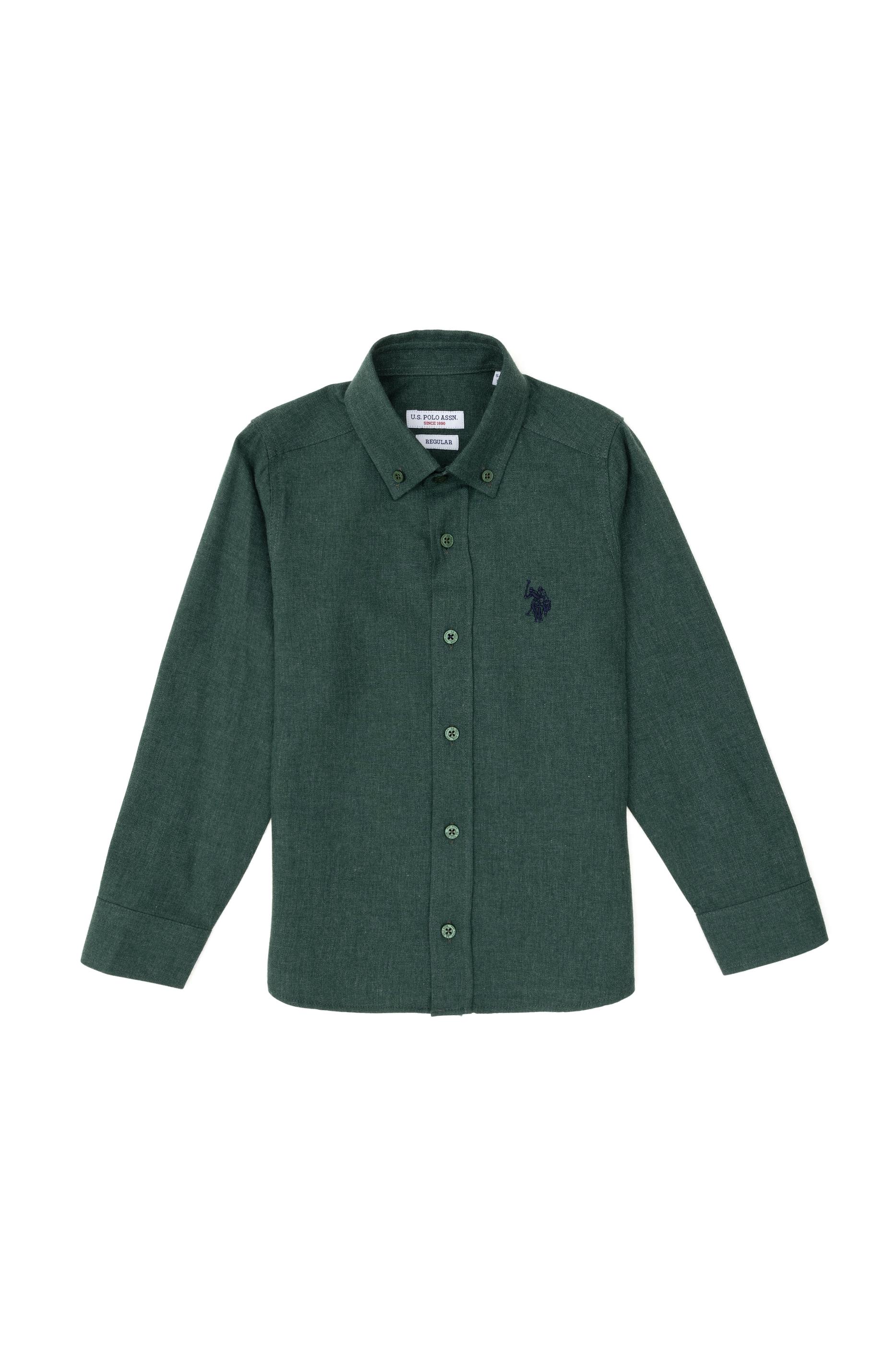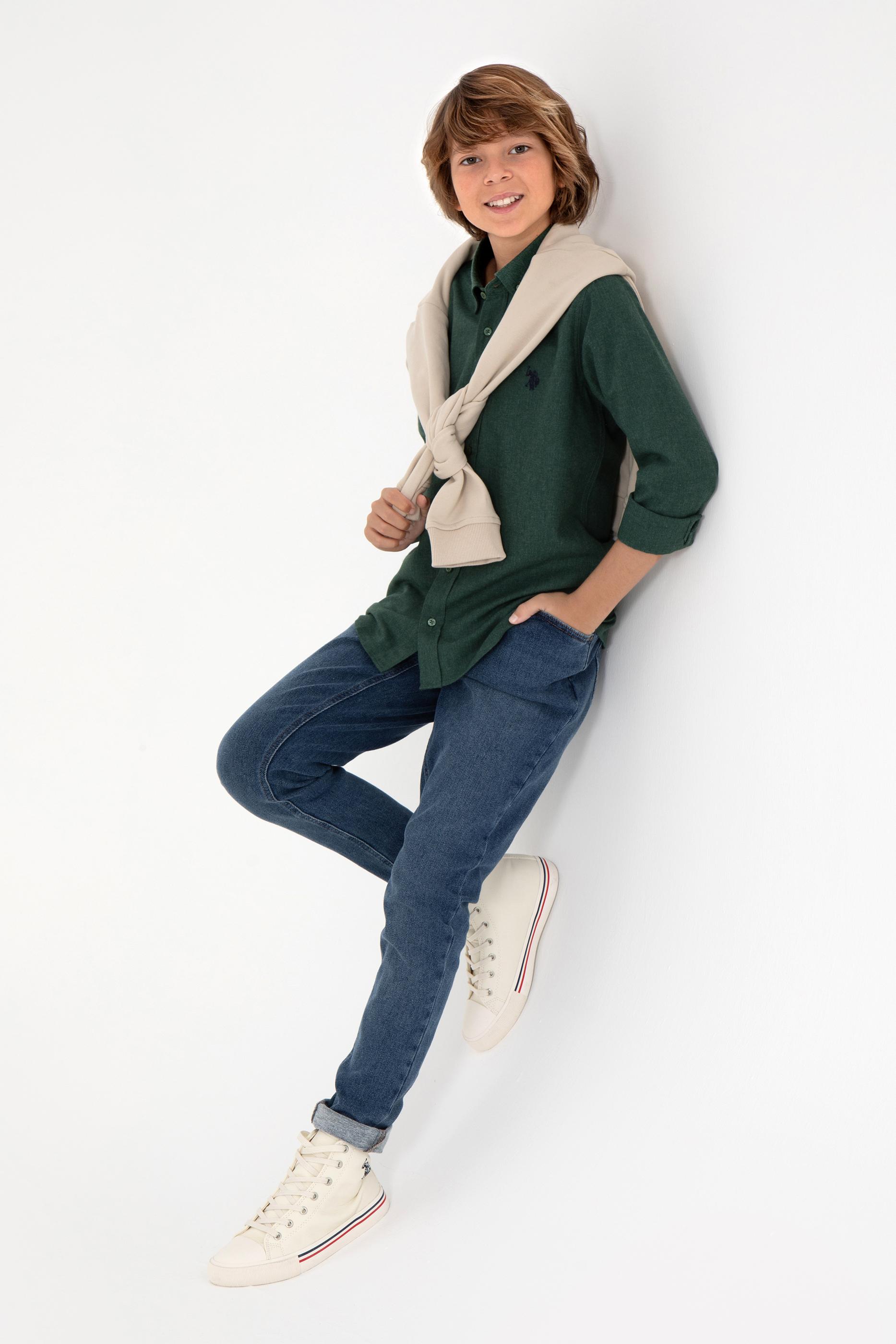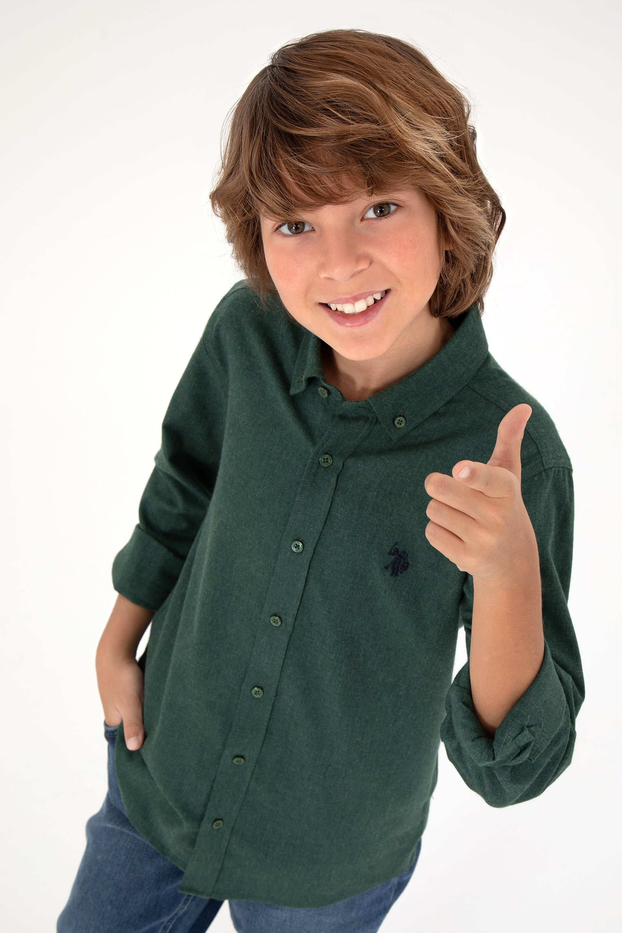 - Erkek Çocuk Koyu Yeşil Uzun Kollu Basic Gömlek