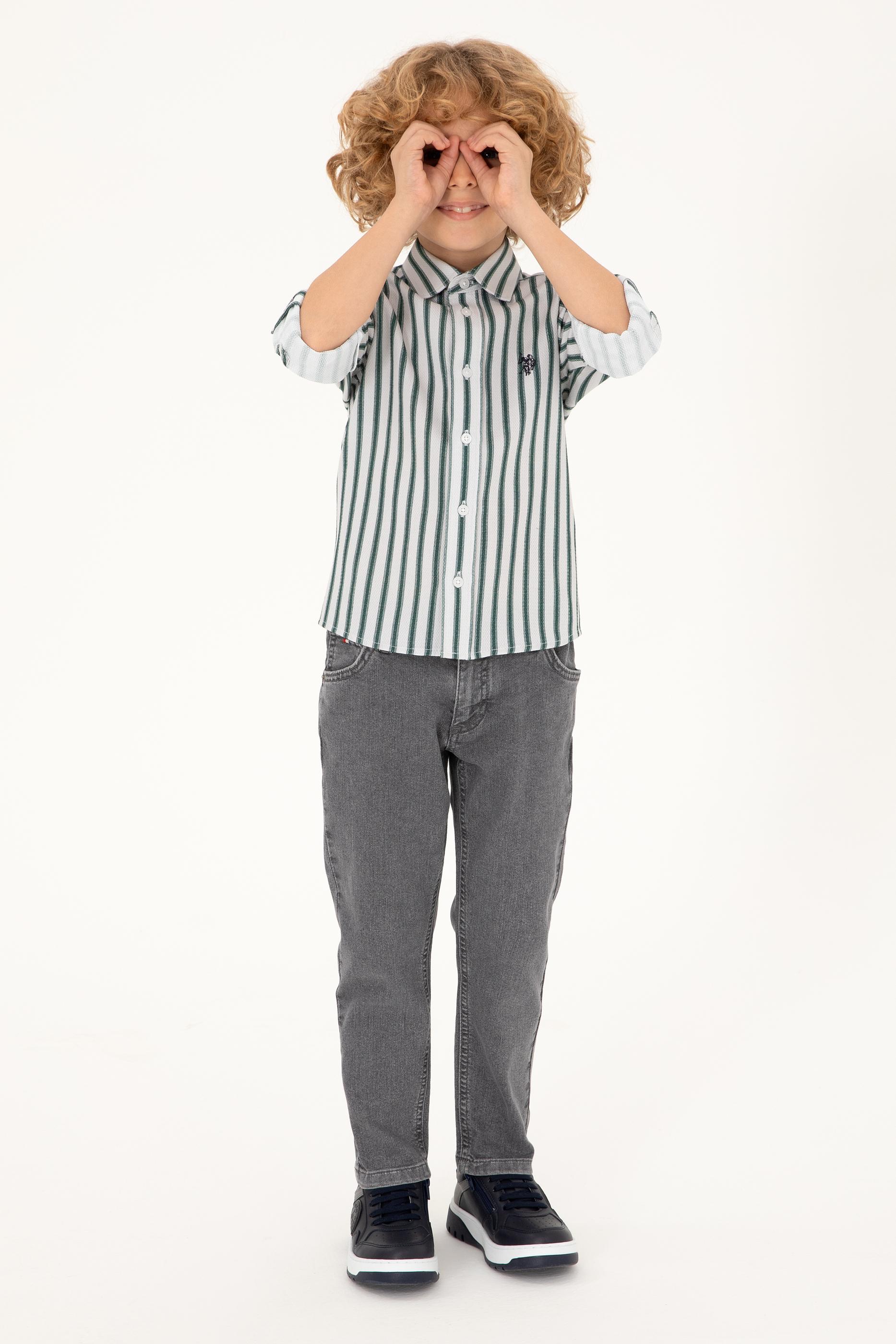 - Erkek Çocuk Koyu Yeşil Uzun Kollu Gömlek