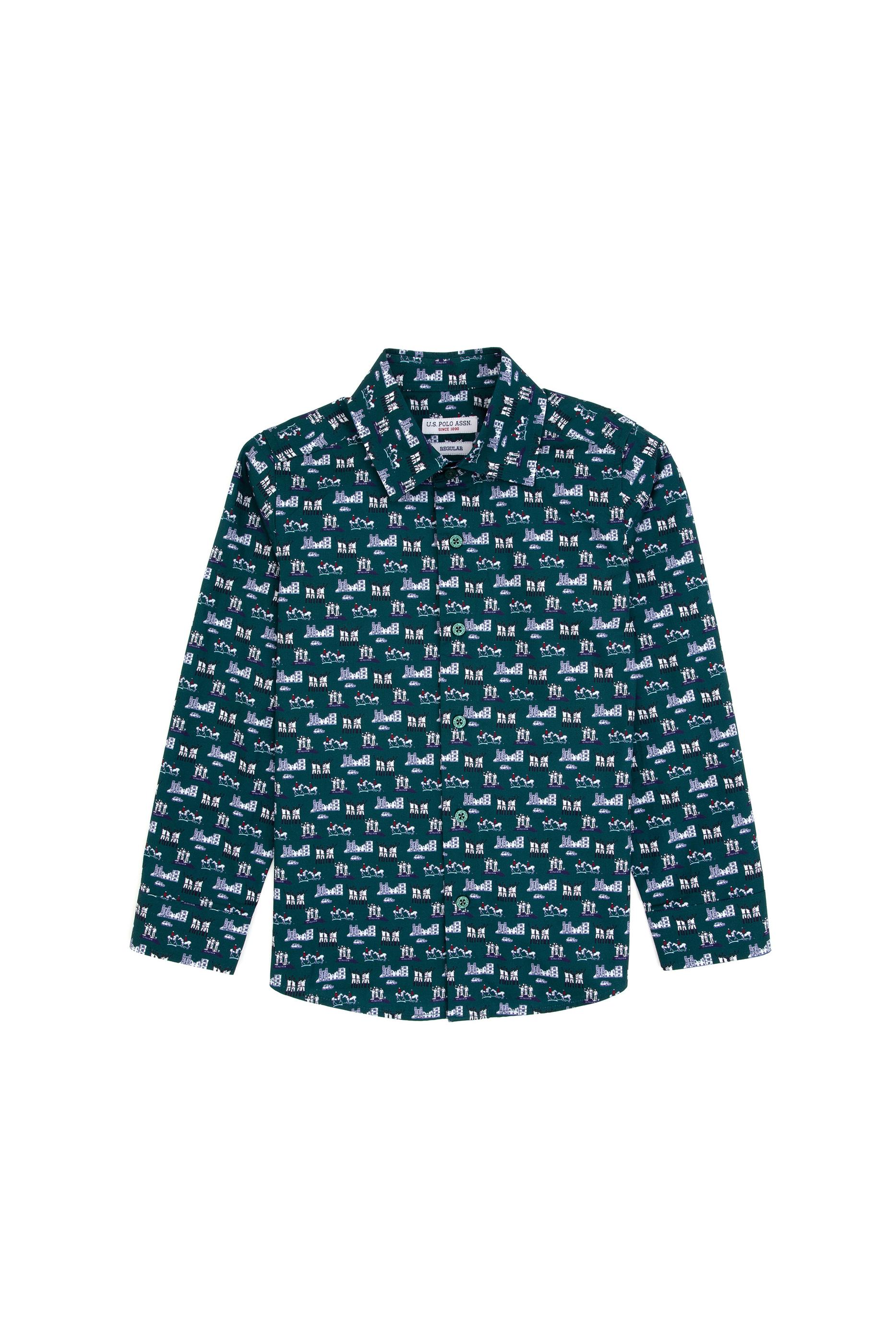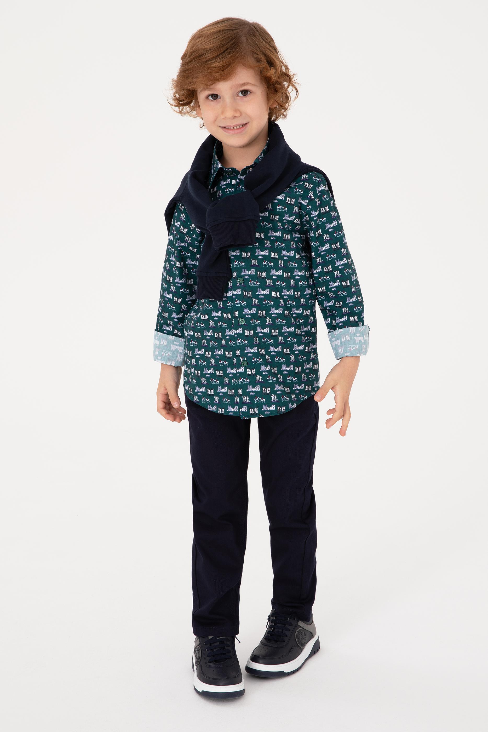 Erkek Çocuk Koyu Yeşil Uzun Kollu Gömlek