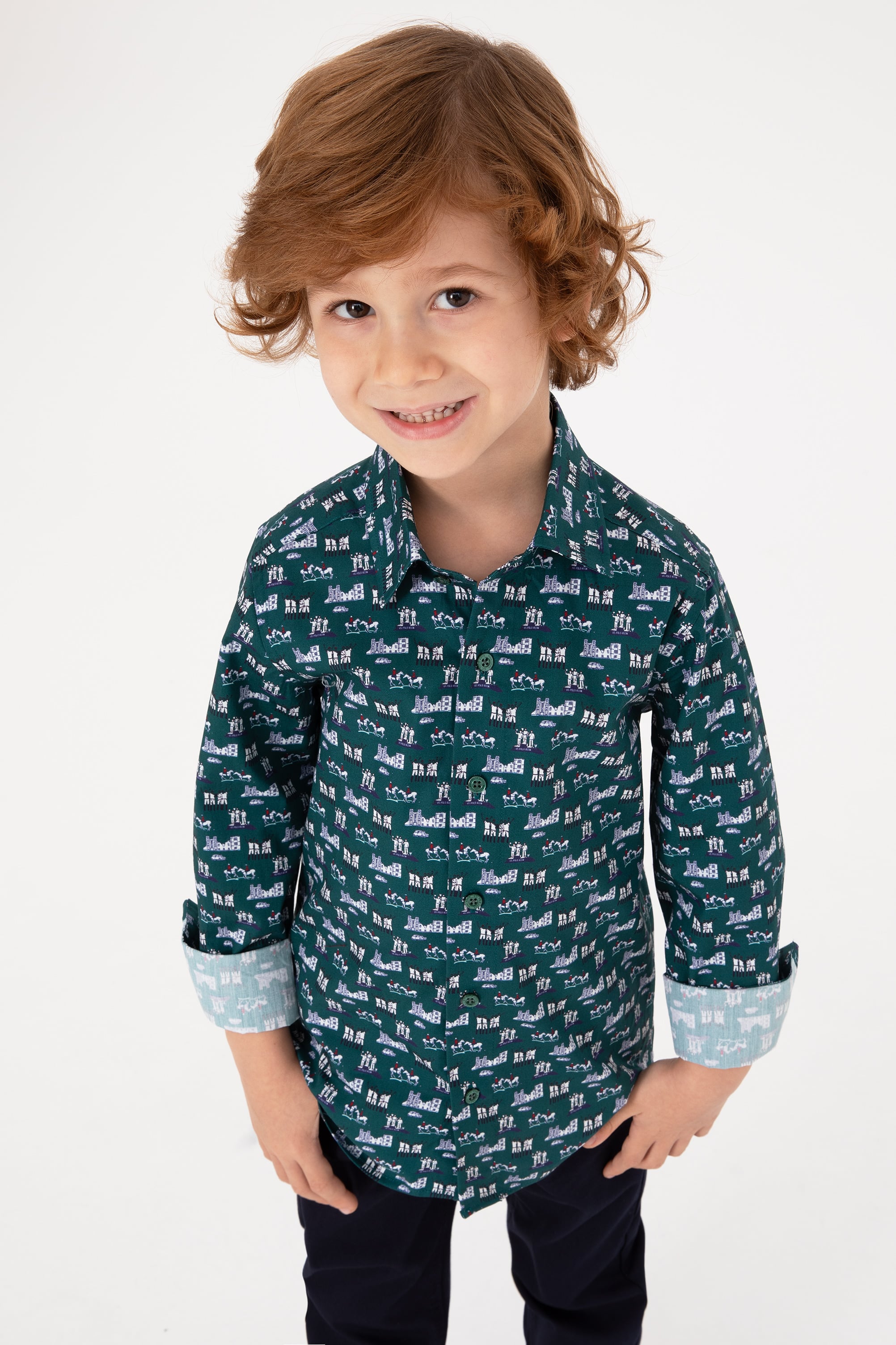 - Erkek Çocuk Koyu Yeşil Uzun Kollu Gömlek