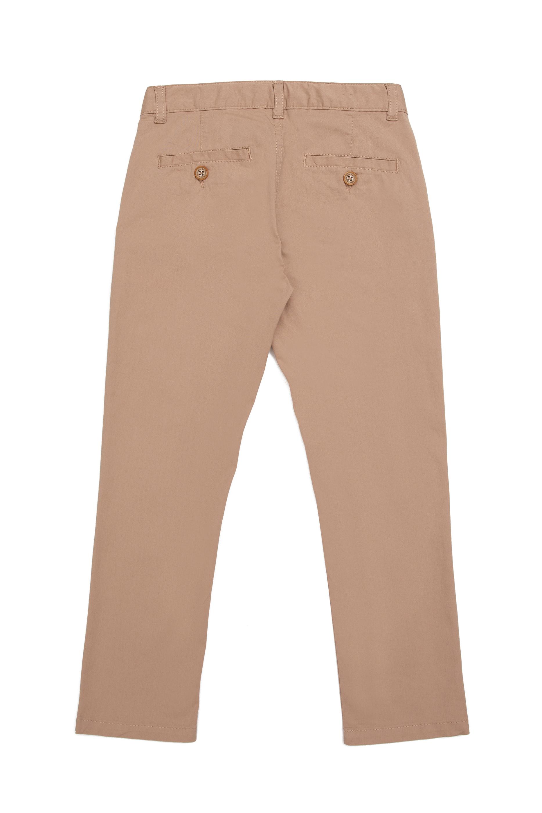 Çocuklarınızın casual bir tarza sahip olmasını istiyorsanız, tercih edebileceğiniz en popüler alt giyim parçalarından birisi chino pantolonlardır. Pamuk ve elastan karışımlı kumaş kullanarak tasarladığımız erkek çocuk chino pantolon modelimiz slim fit kalıbı sayesinde çocuğunuzun vücuduna eşsiz bir uyum sağlar. Düz yan cep detayı ve rahat, nefes alabilen kumaş yapısı ile çocuğunuz günün her anı rahat bir kullanım deneyimini hissedecek.