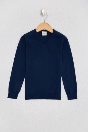 Erkek Çocuk Lacivert V Yaka Triko Kazak Basic