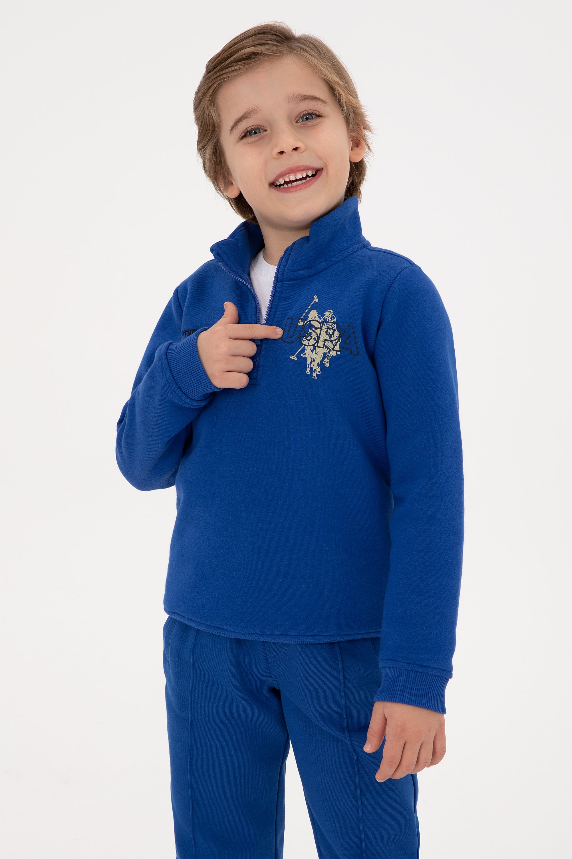 - Erkek Çocuk Mavi Şardonlu Yarım Fermuarlı Sweatshirt