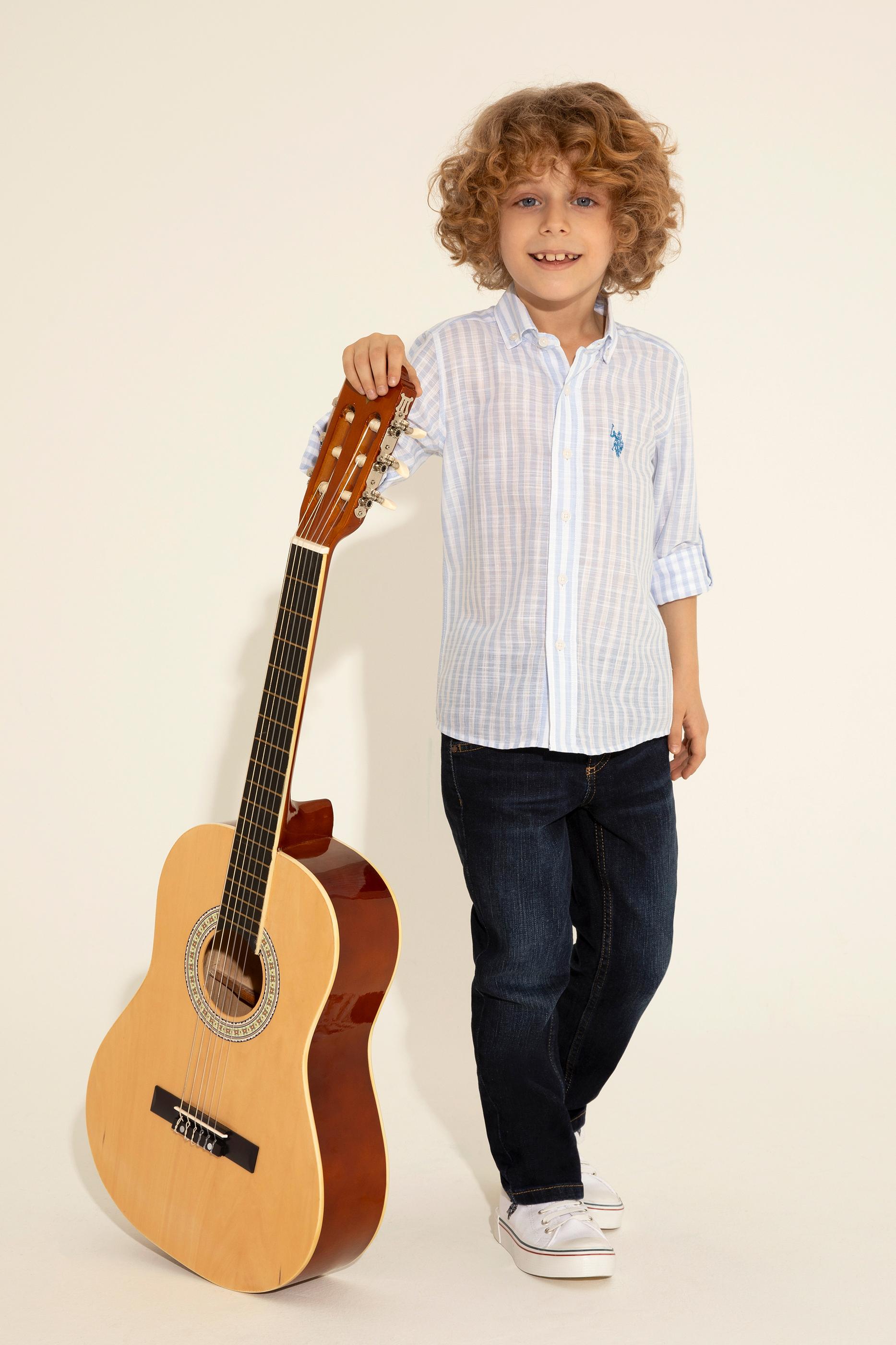 Erkek Çocuk Mavi Uzun Kollu Gömlek