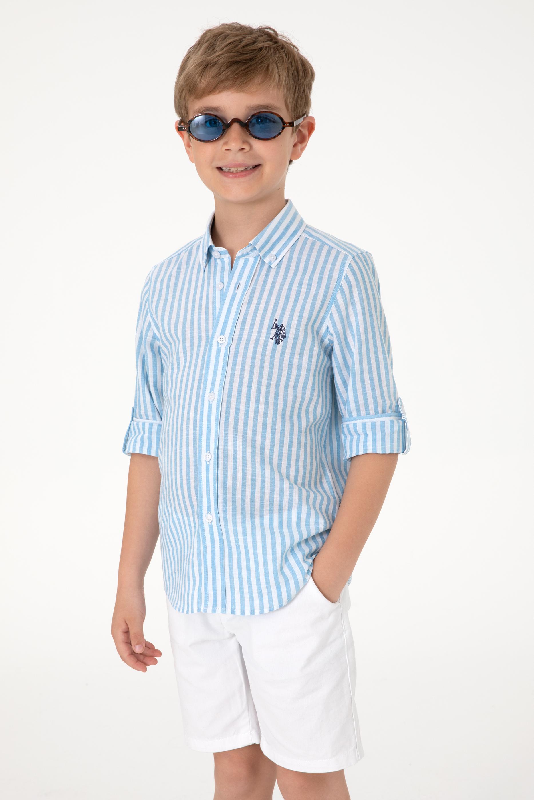 Erkek Çocuk Mavi Uzun Kollu Gömlek