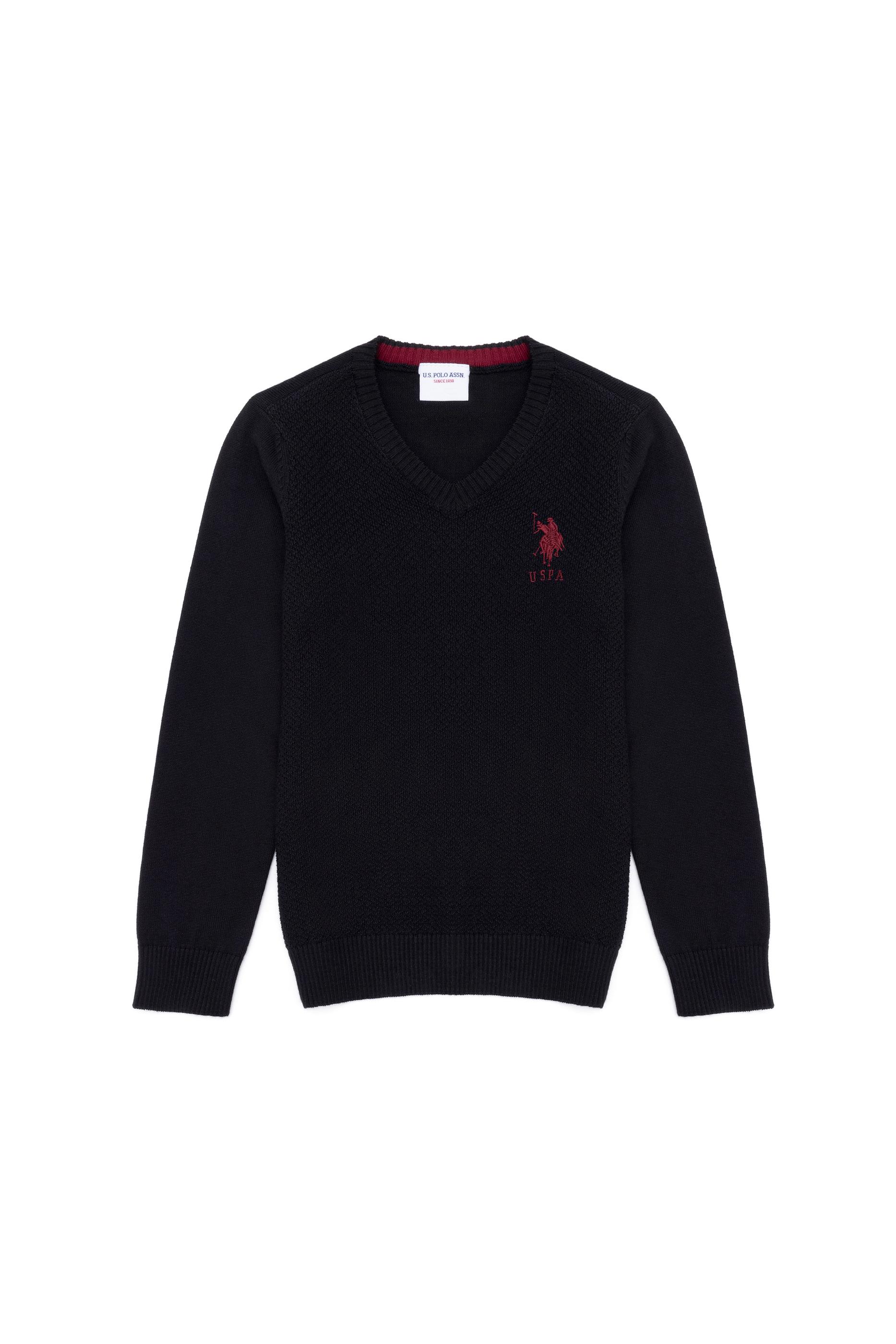 Erkek Çocuk Siyah V Yaka Triko Kazak